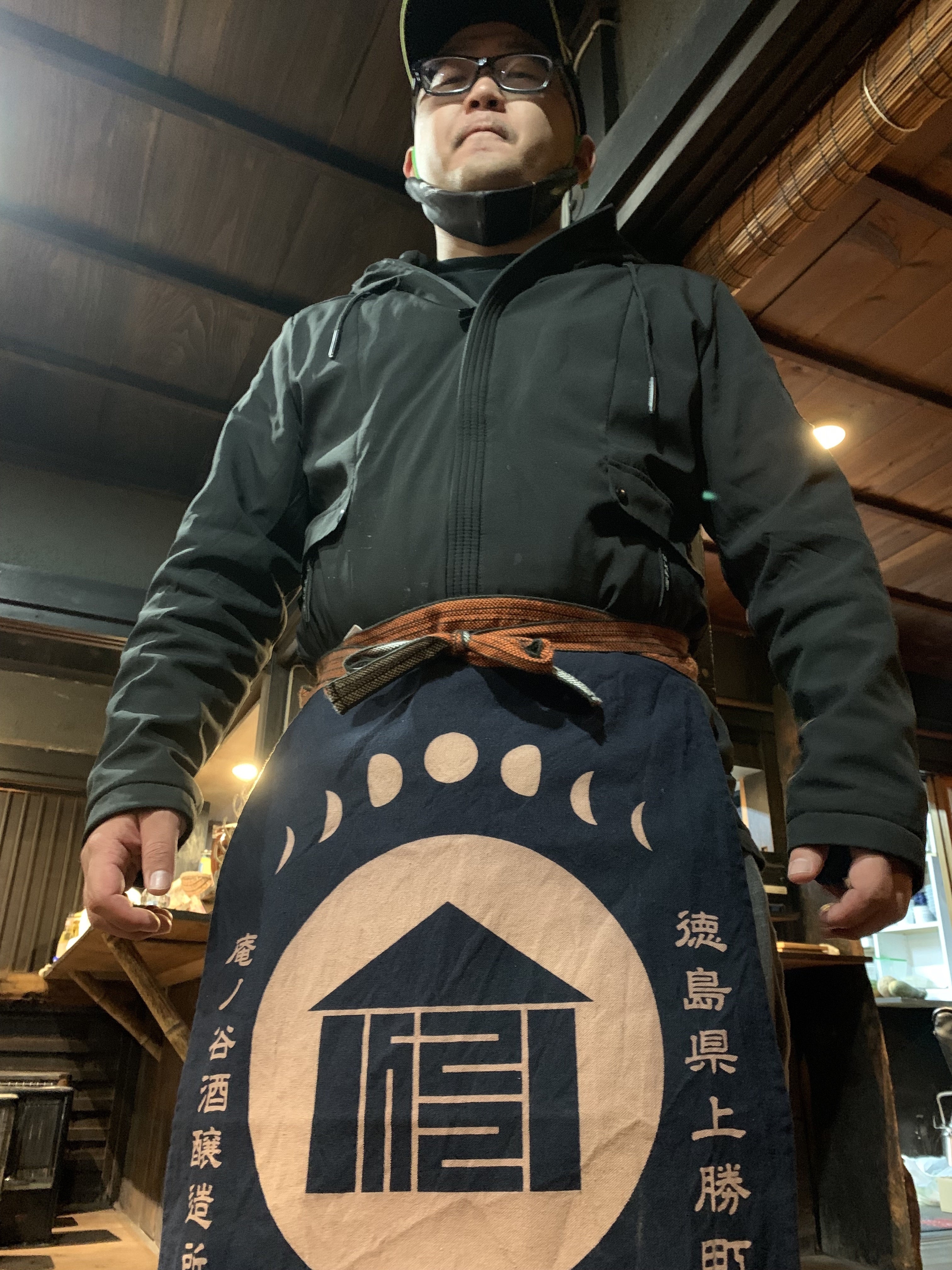 エルミタージュ・バレー酒ブリュワリーでは、12月16日の発売開始に向けて急ピッチで準備を進めています。絶対に必要な瓶やキャップ、箱などはもちろん、Restaurant&Bar IRORIのお客様にどぶろくを提供するときのグラス、スタッフ用のTシャツなどを次々に発注(グラスやTシャツはクラウドファンディングのリターンと同じものです)。それらが届く前に醸造スタッフが使う前掛けが届きました。初めて腰に巻いた醸造長の山田翔太も緊張気味。「美味しいどぶろくを造らねば」と顔が極度に強張っております。