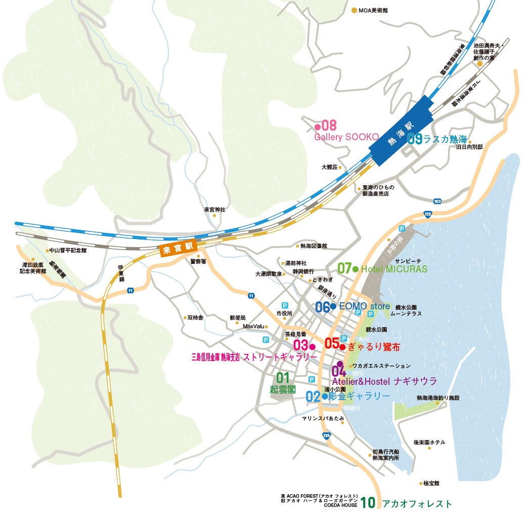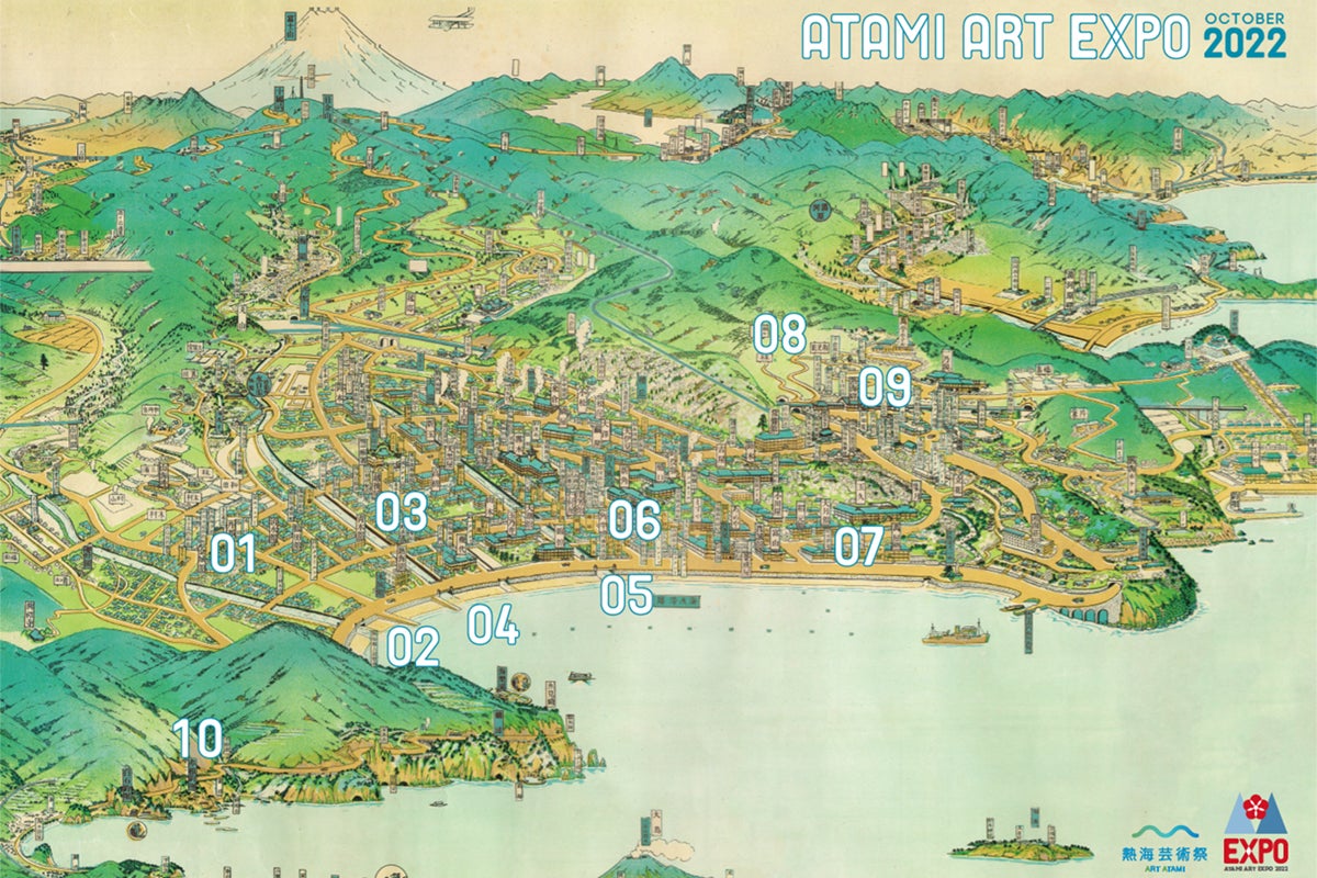 (ATAMI ART EXPOオリジナルMAPを熱海市内各所で配布しております。)