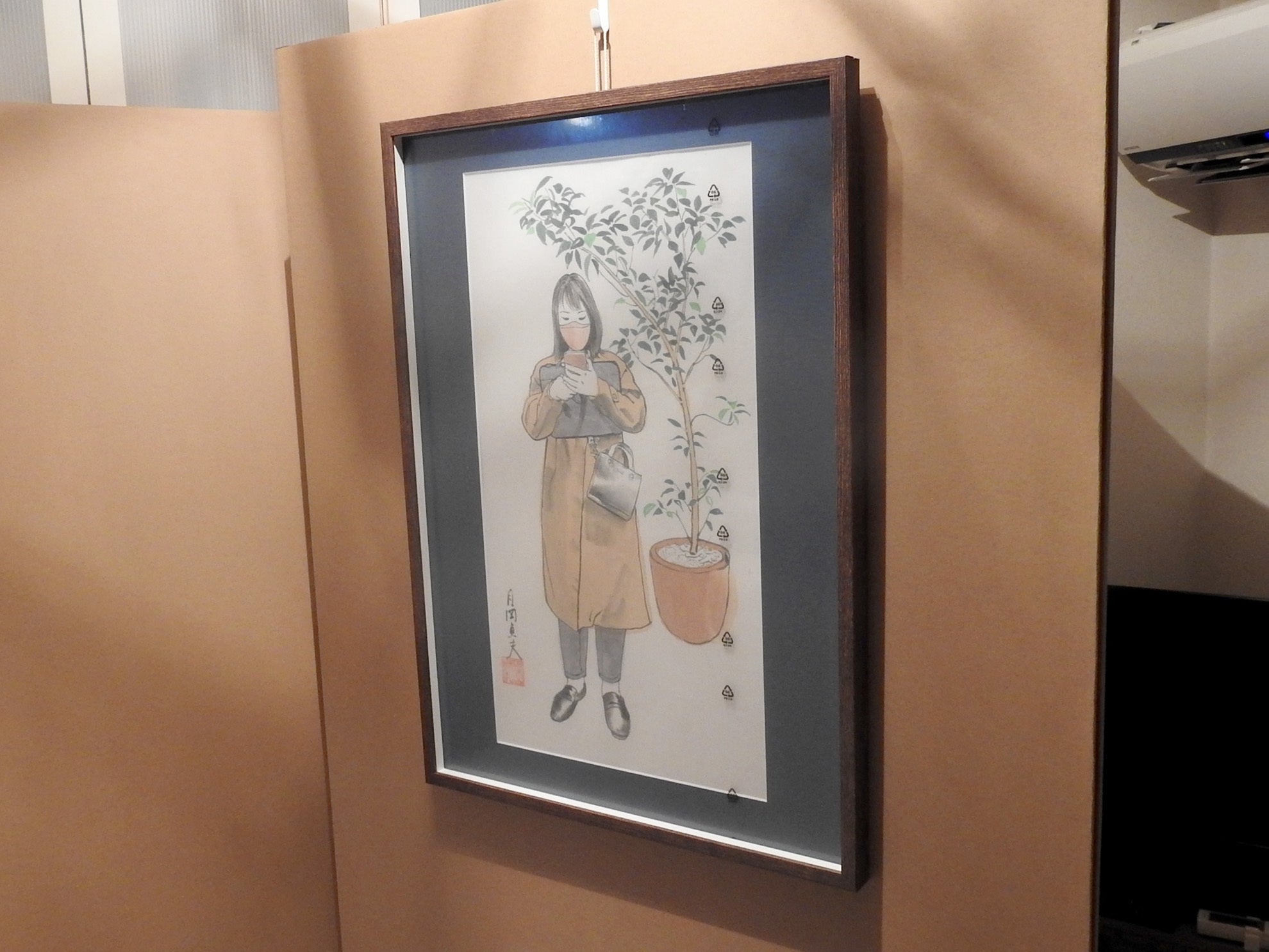 ラスカ熱海の2Fで10月1日から始まる「月岡貞夫原画展」の準備です。