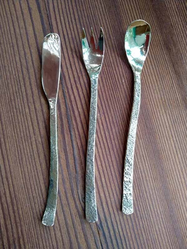 真鍮材の鍛金(叩き出し)制作によるカトラリーです。