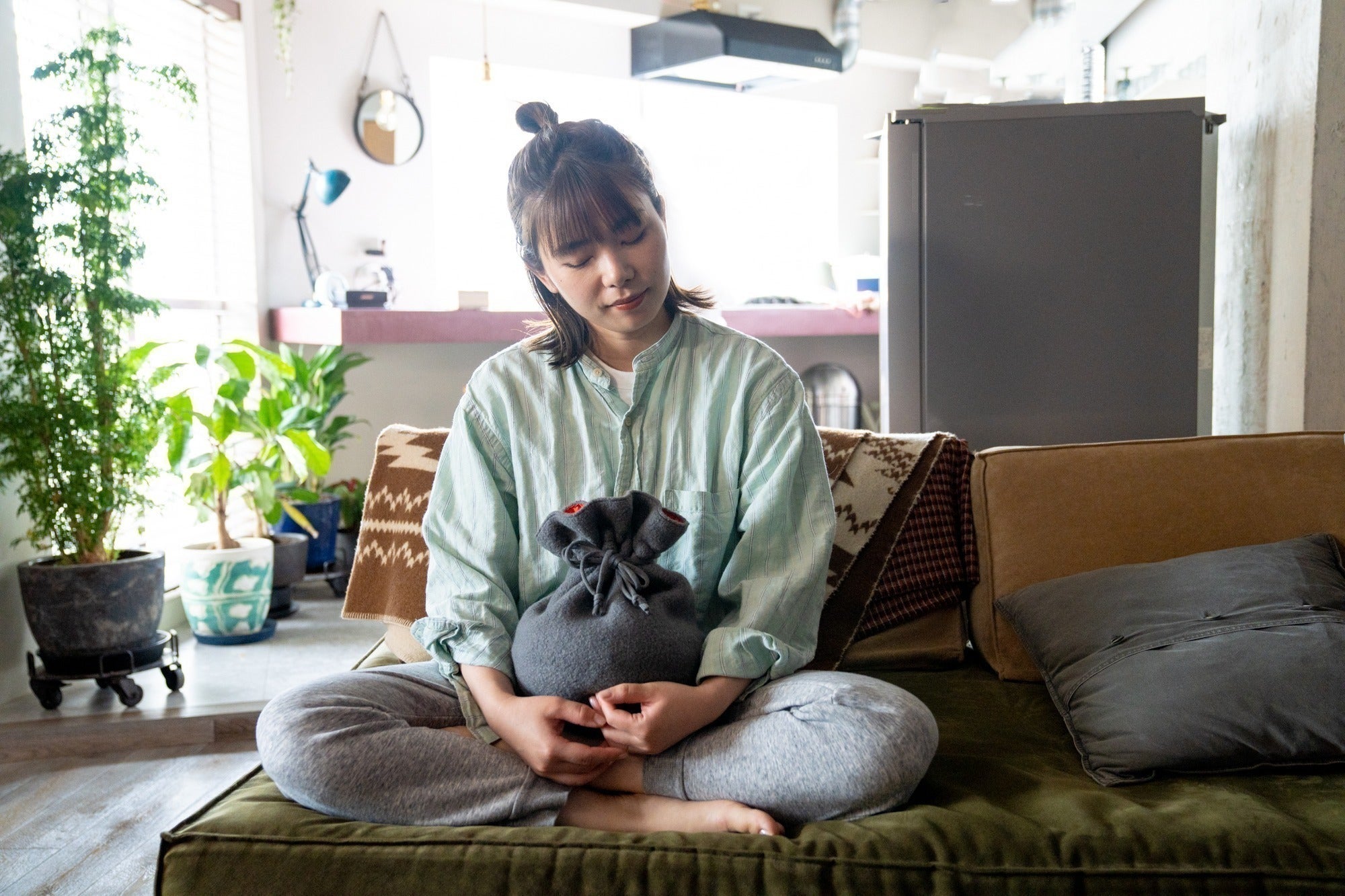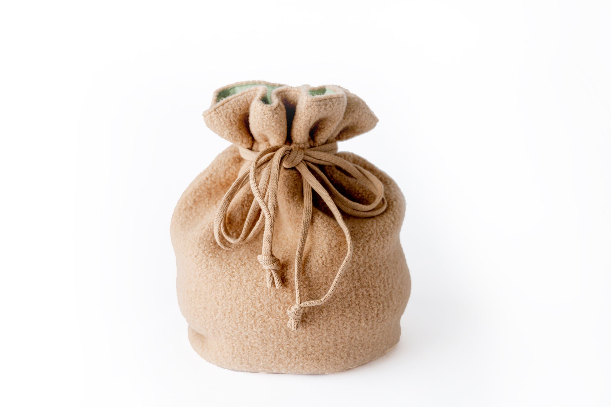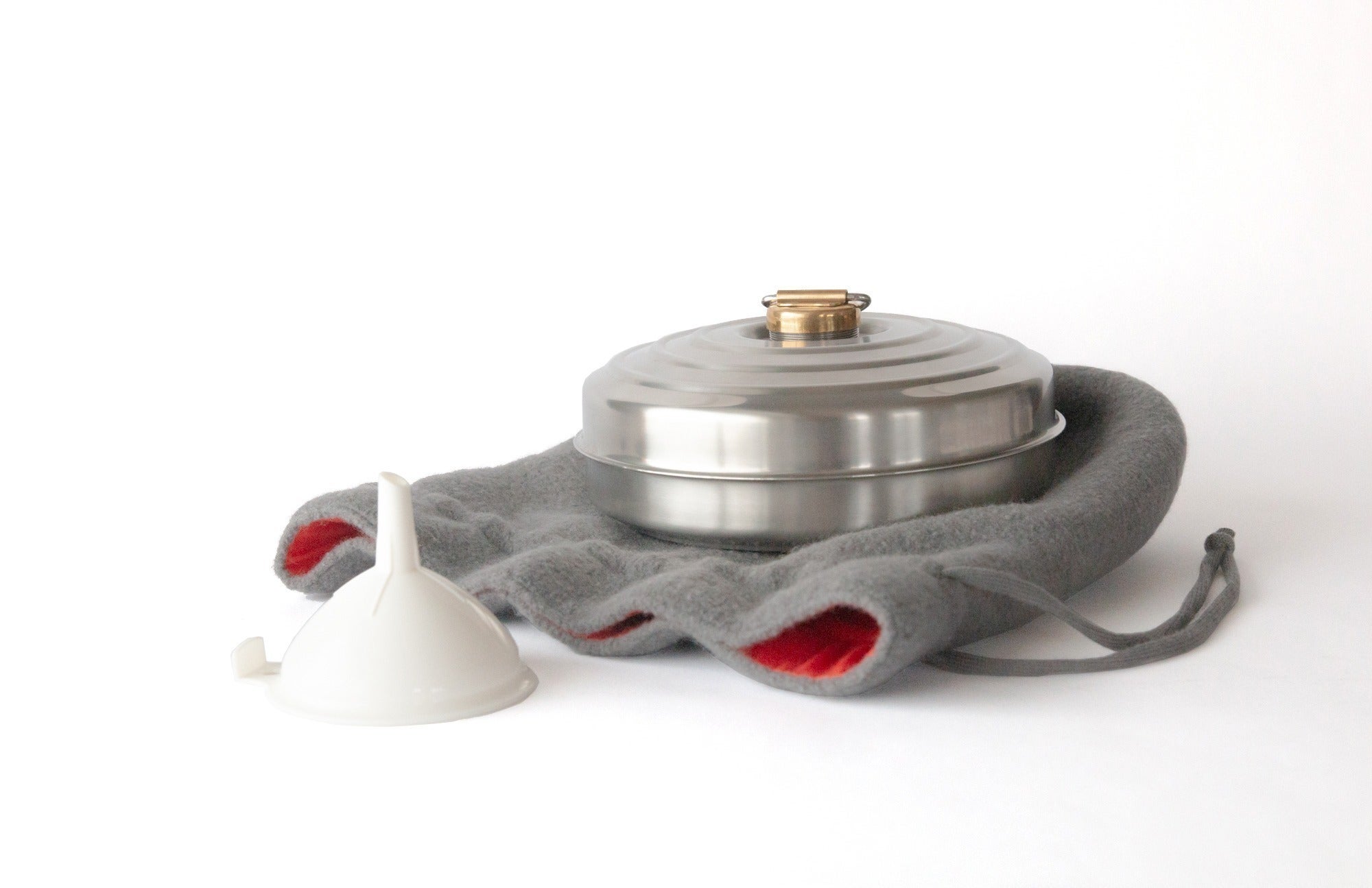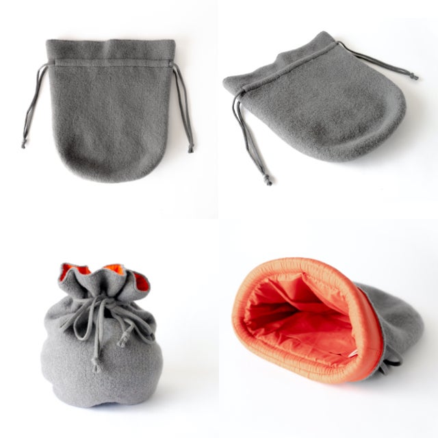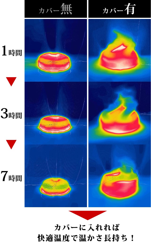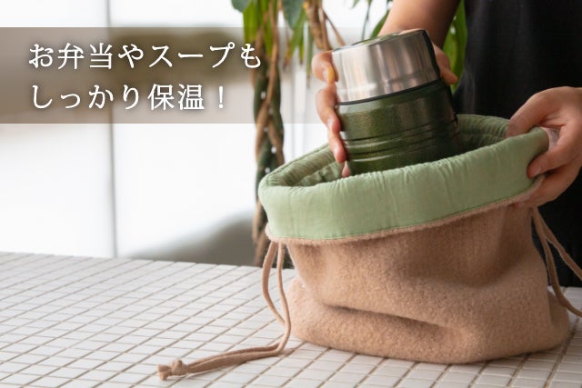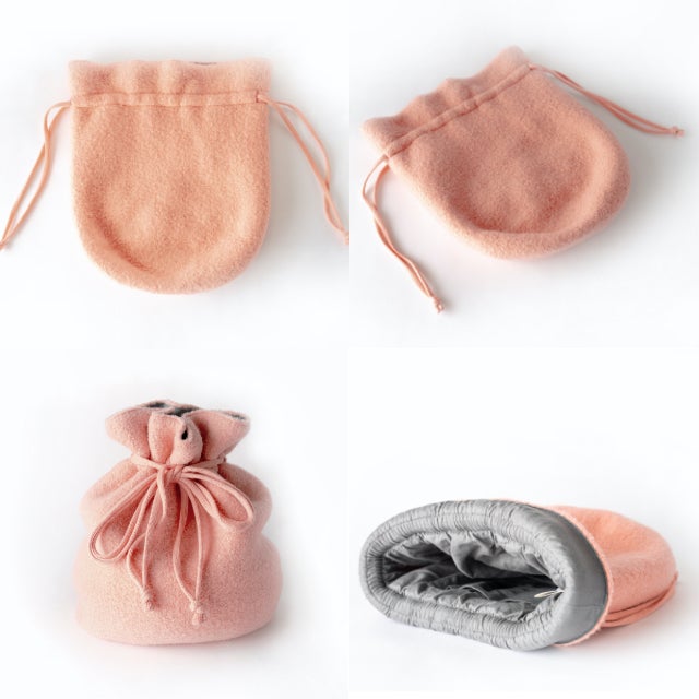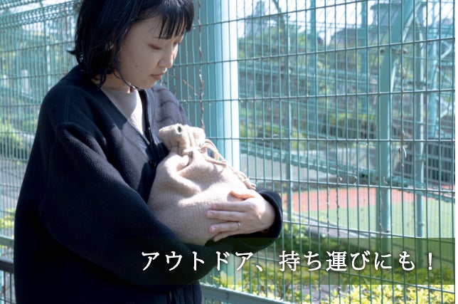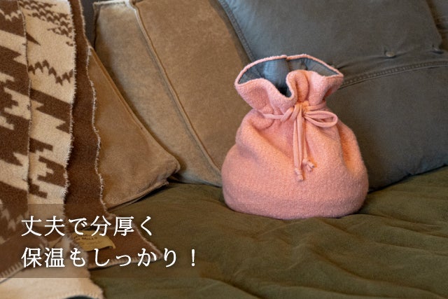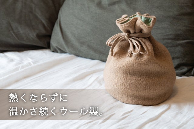 巾着型の専用ウールカバーで、熱くなりすぎず、温かさを長時間キープ