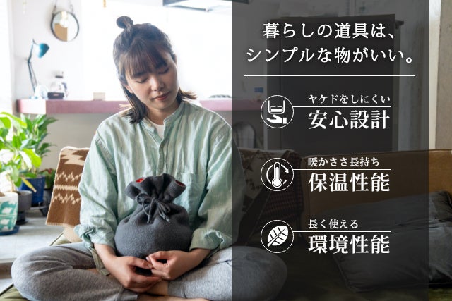 電気や石油の高騰が続く昨今、原点回帰して電気屋石油に頼らない湯たんぽを現代風にアップデートして皆さんに使ってもらおうとの思いです。