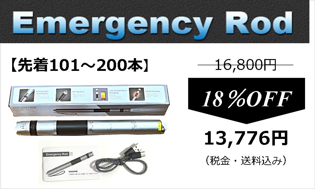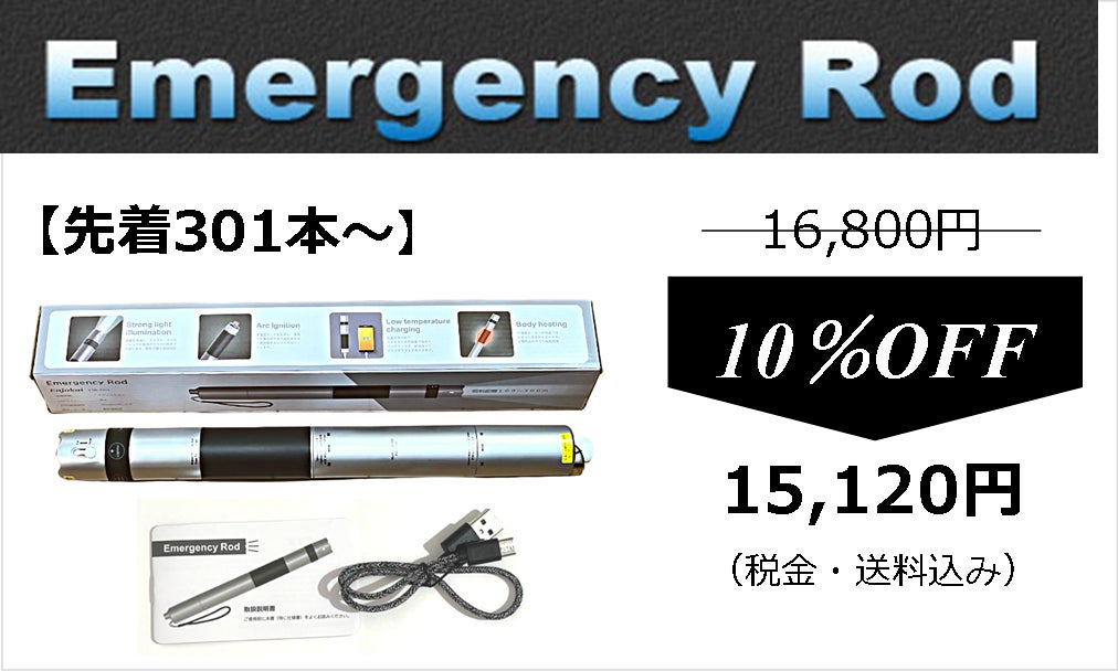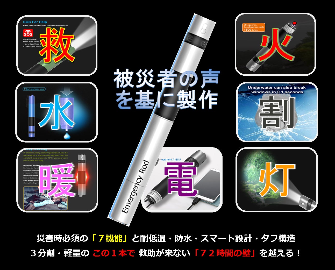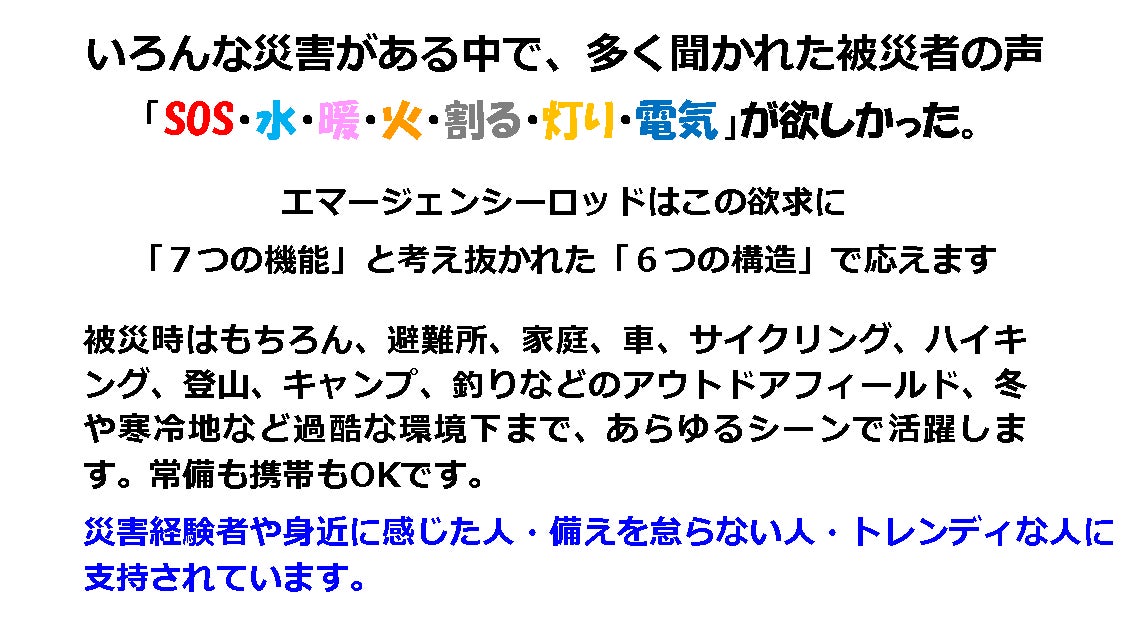 この「エマージェンシーロッド」は、これまでにない「頼りになる道具」として活躍します。家庭での常備品としても注目です。