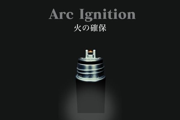 アーク(電極間で作る放電流)を生成して、風が強くても簡単に点火し「火」を作れます。※下記ビデオをご参照ください。