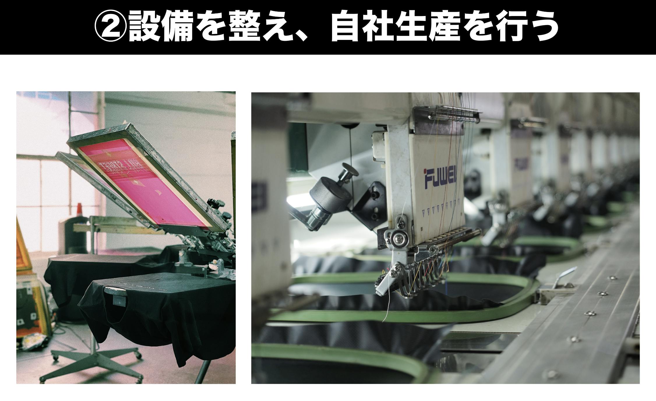 ◼︎ガーメントプリンター・刺繍機を導入し、自社生産による更なる価値向上を図ります。