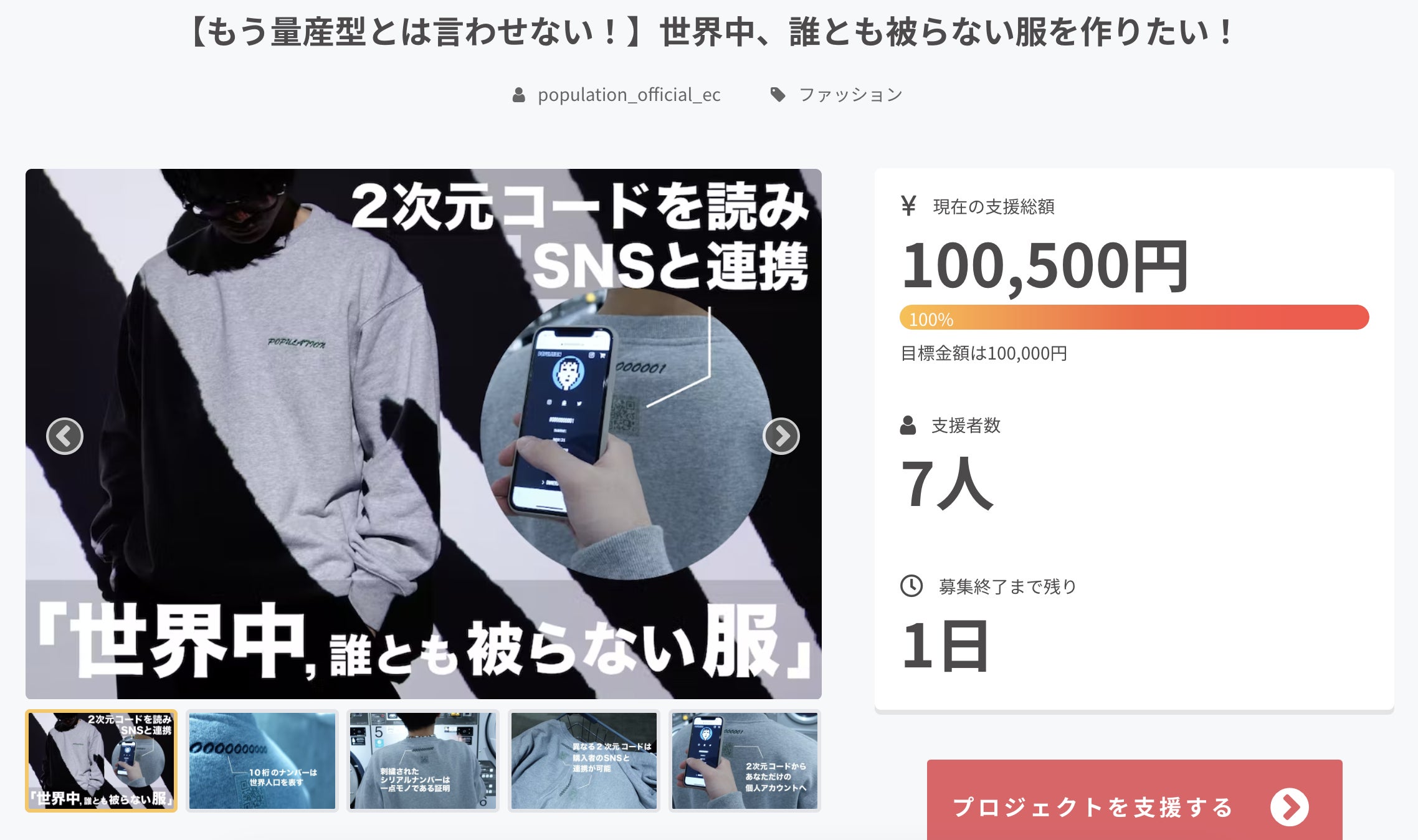 QRコードを読み込むと購入者のページに移動し、服の所有者であることを証明します!
