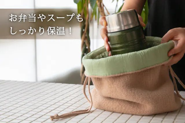 ウールフェルトは保温に強く、例えばお弁当やスープを入れるバッグにすれば、しっかり温かいまま保管。分厚い生地でしっかりクッション、衝撃にも強い入れものとして使用可能です。