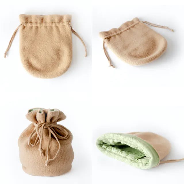ウールカバーに包まれた状態なら生地の厚みのおかげで熱くなりすぎず快適な温度で布団を温め、さらに巾着を縛った少し背の高い状態で布団に入れることで、コタツのように包まれた空間ごと温めるというのがポイント。