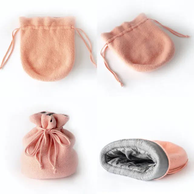 本体をカバーにスポッと入れて使うだけ、ウールの層がお湯の温度を心地良い温かさに変換してふんわりと体を温めてくれます