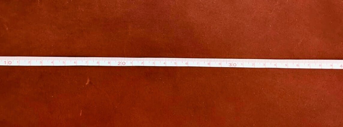 厚いヌメ(植物成分)に染料とオイルで仕上げたスムース革(凹凸の無い革)。硬めに作られた革の為、ベルト等、帯として使用してもへこたれません。