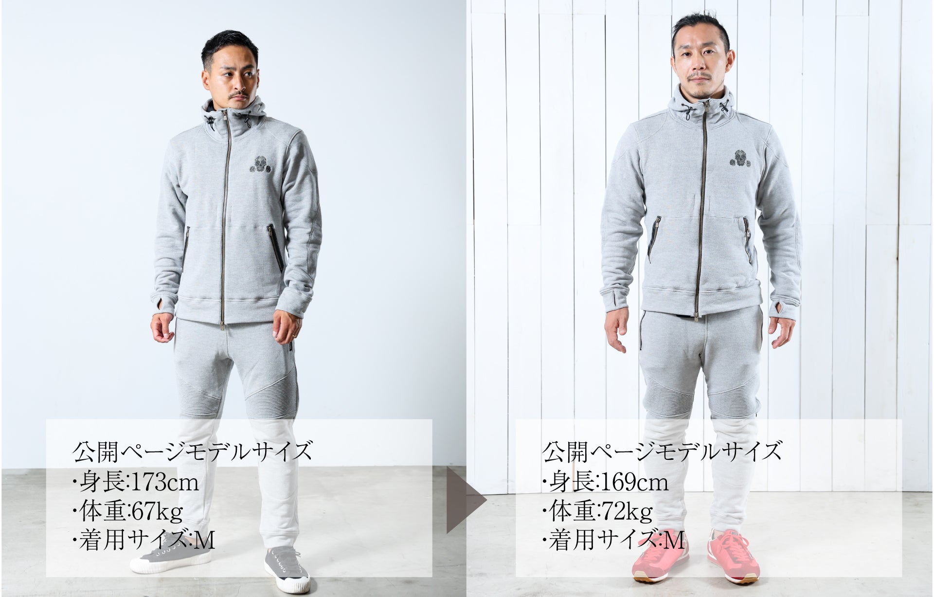 クラウドファンディング公開ページのモデルは一般的体型ですが、今回プロテクター画像比較の着用モデル(高田自身)はラガーマン体型です。着用は同様のMサイズで行っています。