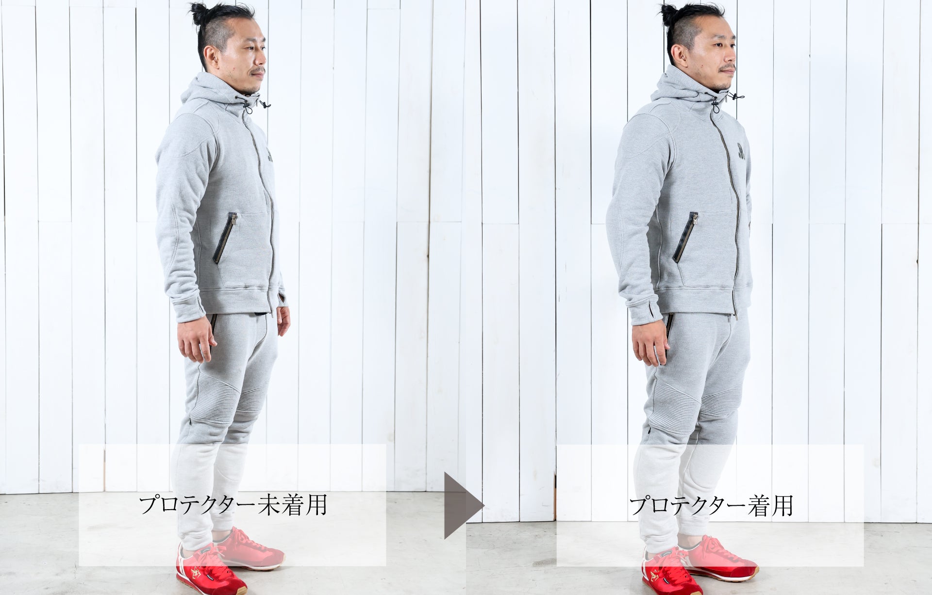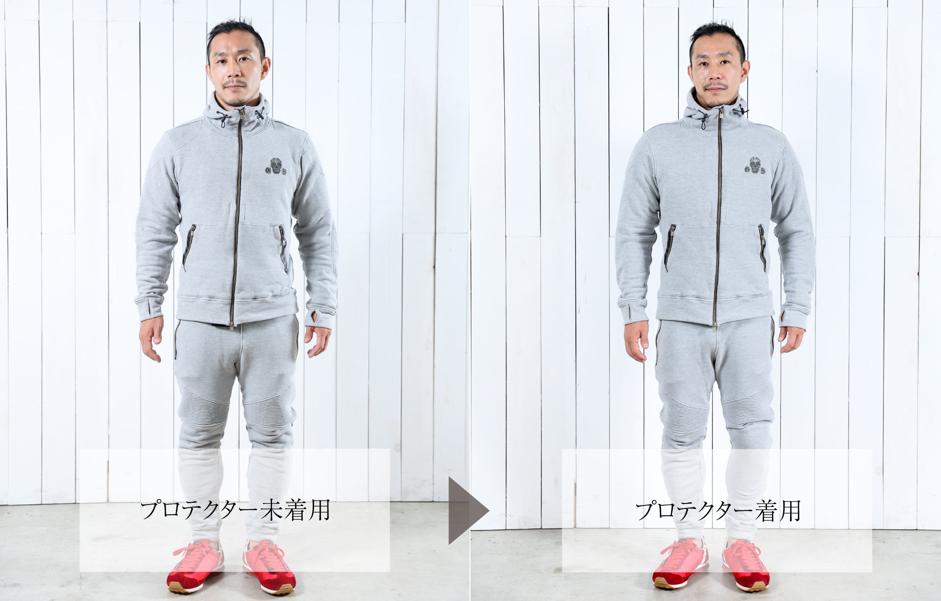 内容としてはプロテクター着用、未着用の比較画像となります。ご参考にしてくださいませ!