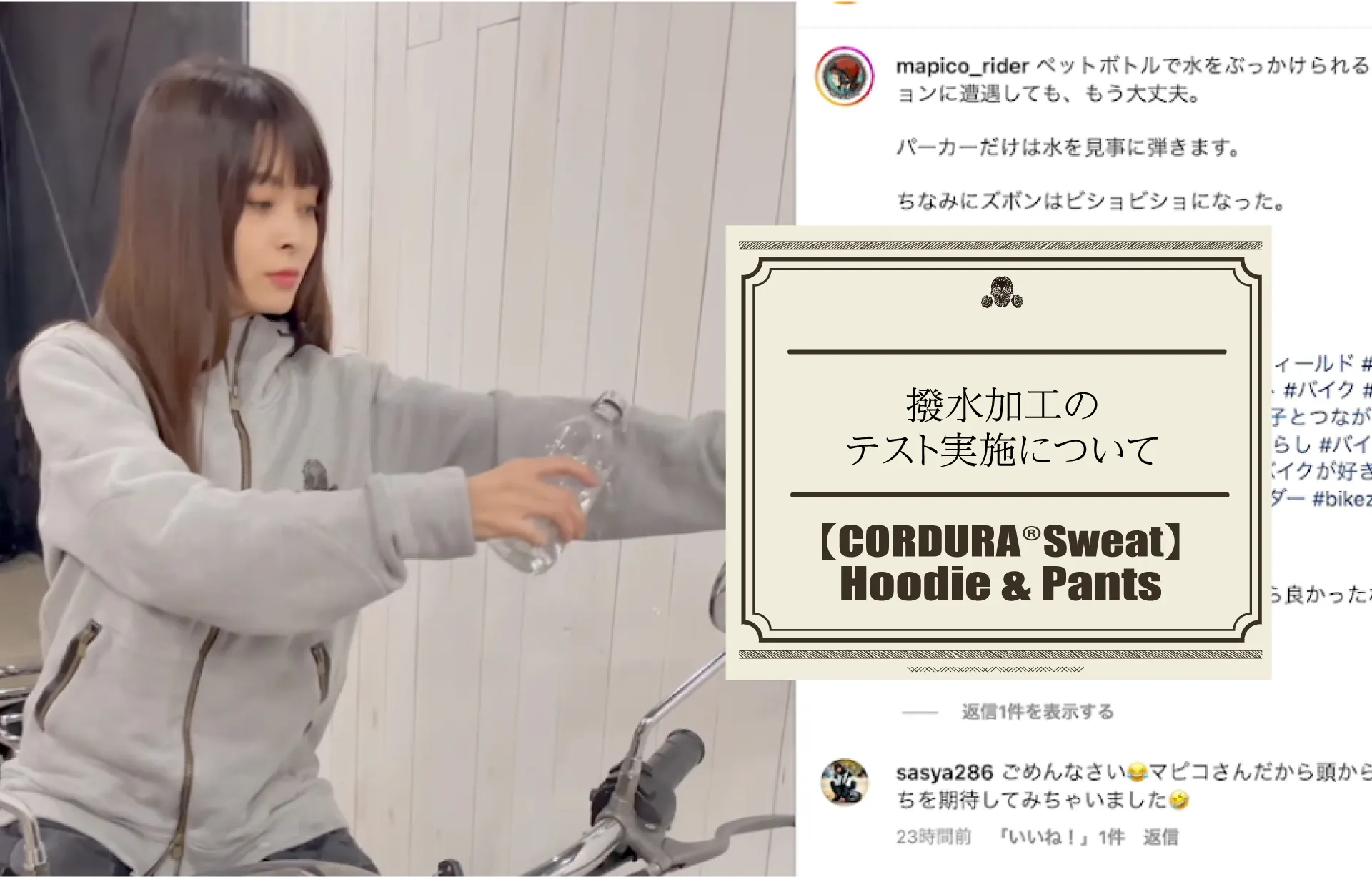 また同時に撮影の合間にインフルエンサーのまぴこさん(mapico_rider)さんに手伝っていただきました。