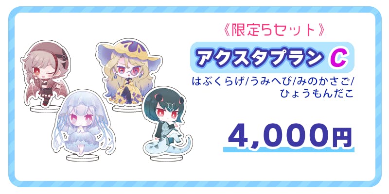5セット限定!『ぼくらのうみ』アクリルスタンド(めんだこ/ほたるいか/くりおね)がセットになったプランです。