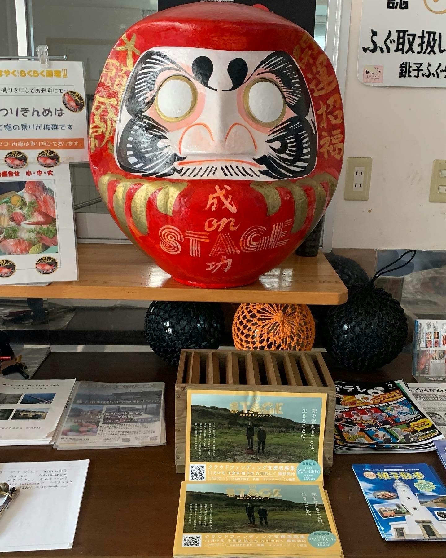 ロケ地でのプロジェクトの告知をするためにチラシを銚子のいろいろな場所に配りました。