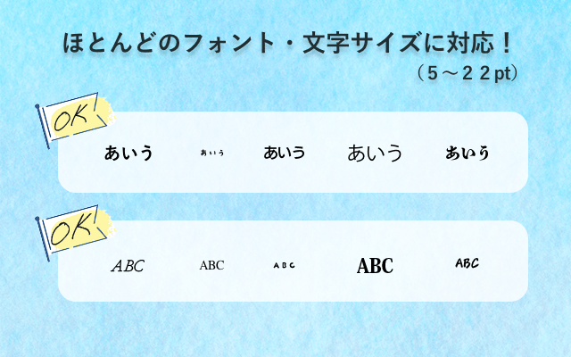 様々なフォントや文字の大きさを認識できます!