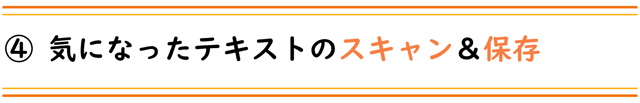 例えば本、ウェブサイト、雑誌、新聞など読んでいる時に、気になった箇所のテキストをスキャンして保存できます。後でその部分を参照したり、テキストファイルとしてエクスポートしたりできます。