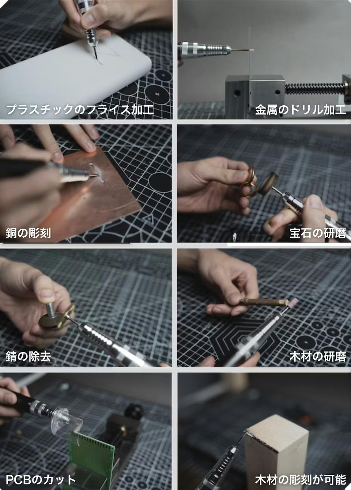 木材から金属まで自由自在に加工ができて、穴あけ精度も高いコードレスミニルーター「BOLTZ」です!