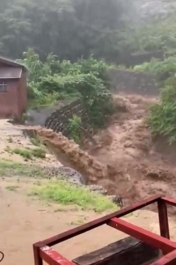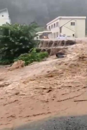 あっという間の出来事でした。8月4日未明から激しい雨が降り続き、午前8時半ごろから施設横を流れる野津又川が増水。川岸を越える勢いで焦げ茶色の濁流が迫り、大きな岩が流れるような地響きに恐怖を感じました。今まで見たことのない川の様子に命の危険を感じながらも、どうすることもできずに被害が最小限に留まることを祈るばかりでした。ようやく雨が治まり川からの轟音も止んで宿や養殖池の様子を確認できたのは翌日になってからでした。宿は幸いなことに1階の大広間が浸水する僅か10cm手前、ギリギリのところで水が止まり、大事には至りませんでした。それでも床下浸水は免れず、また調理場が浸水し冷蔵庫や冷凍庫が壊れたほか、上水道が利用できなくなり近日中の予約は全てお断りせざるを得ない状況でした。