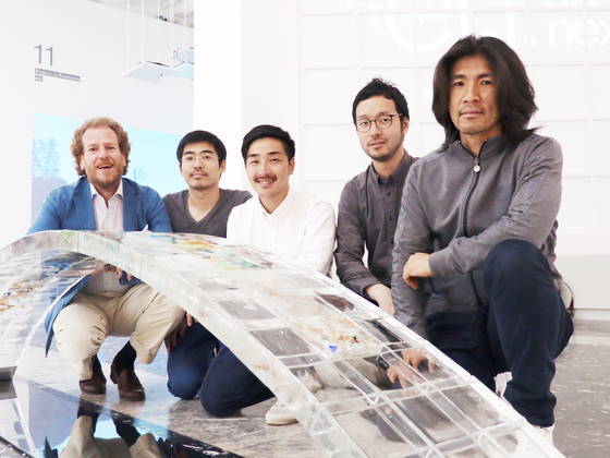 このガラスを「ヴェネチアの橋」として架けるにあたり、世界的に活躍するヴェネチアングラス・アーティスト土田康彦さん(写真左)、パリと東京を拠点として、こちらも世界的に活躍される構造家の金田泰裕さん(写真右)を制作協力者とし、チームとして各々の能力を結集したプロジェクトとなっています。