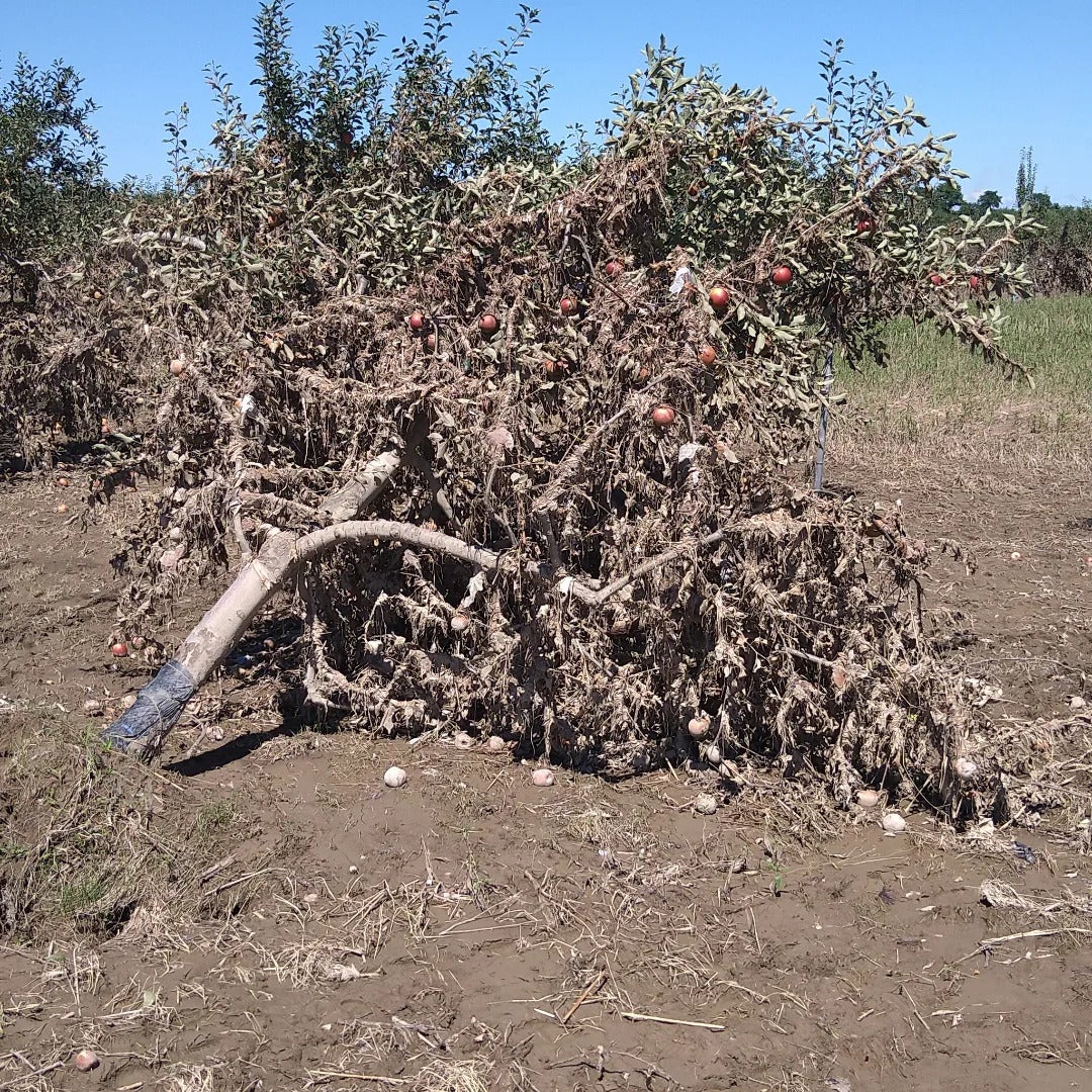 本来なら真っ赤なりんごが見れるはずですが今年はりんご園は閑散としています。