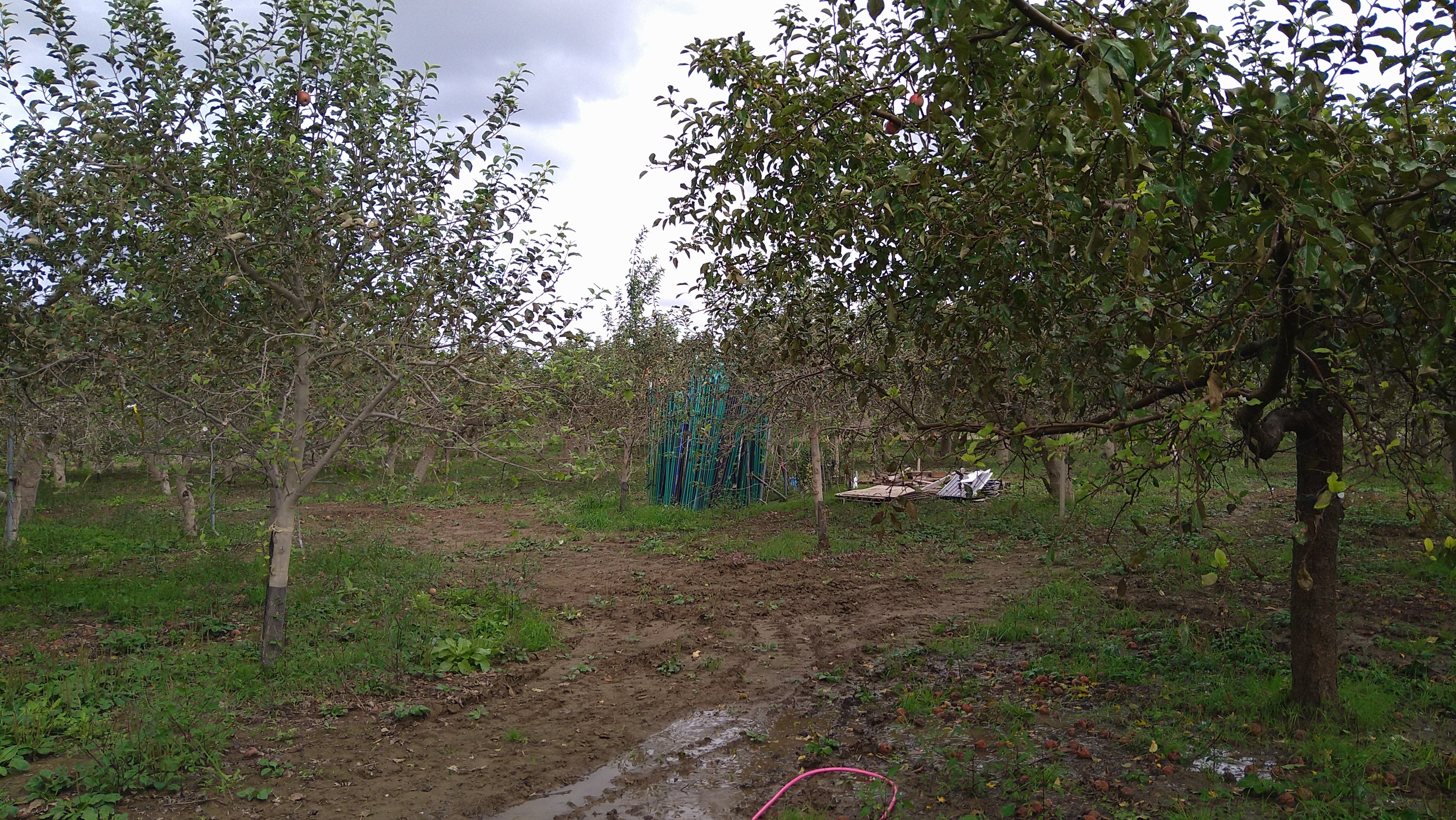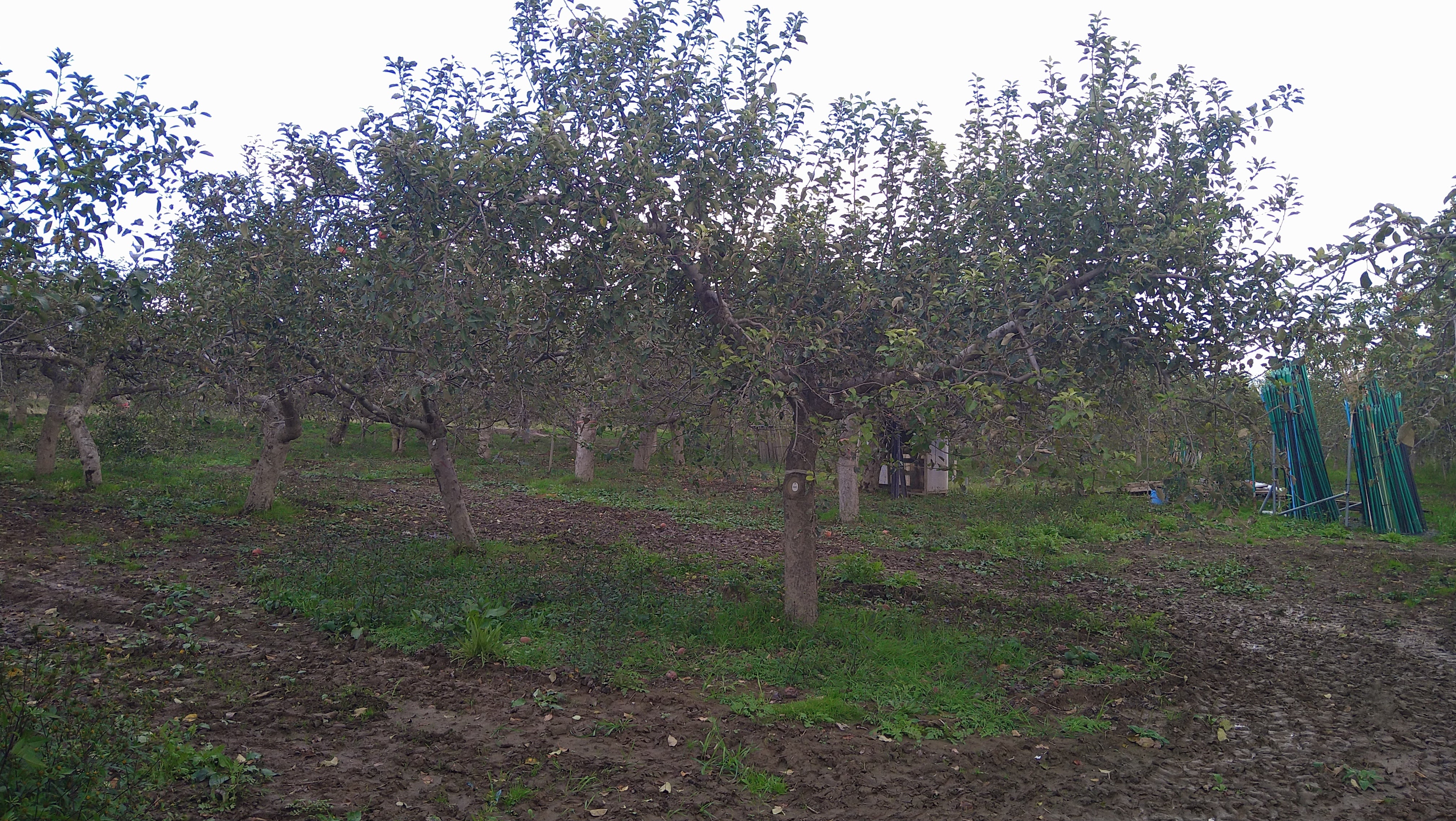 (水害直後8月)(去年の10月中旬頃)朝晩の気温が10℃をきるようになり大分冷え込んできました。本来なら真っ赤なりんごが見れるはずですが今年はりんご園は閑散としています。今は来年の収穫に向けて木の洗浄も進めてています。泥まみれだった木も、緑が戻って気持ちいいですね!引き続き頑張ります!