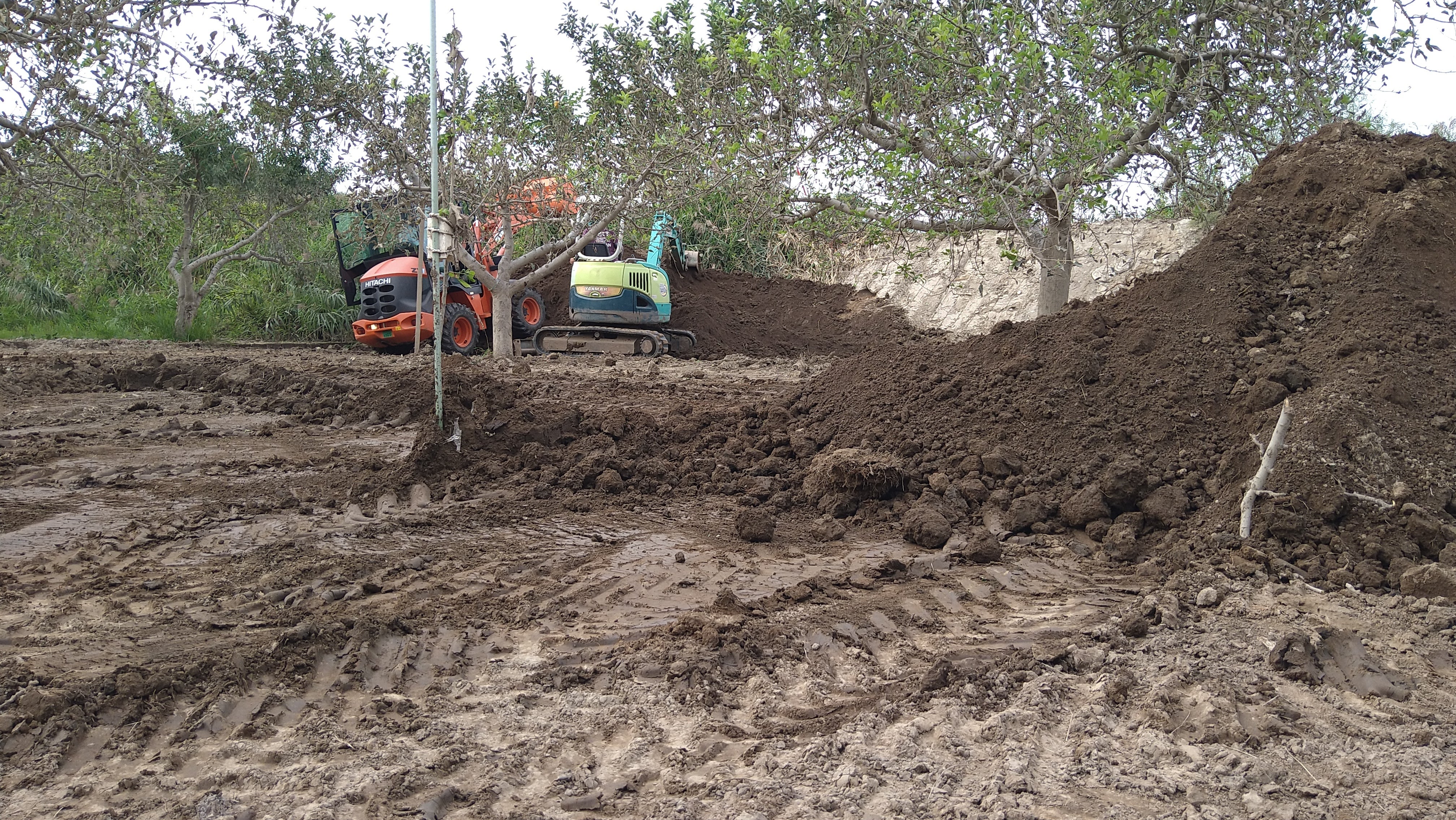 奇跡的に残っていた特大玉のトキ。水害で食べる事はできませんが、いつもであれば今、収穫時期です。来年は特大玉を収穫出来る事を願います!今日は泥ぼこりが凄かった園地の道の整地しました。雨の後なのでスムーズに泥をかきだせました。