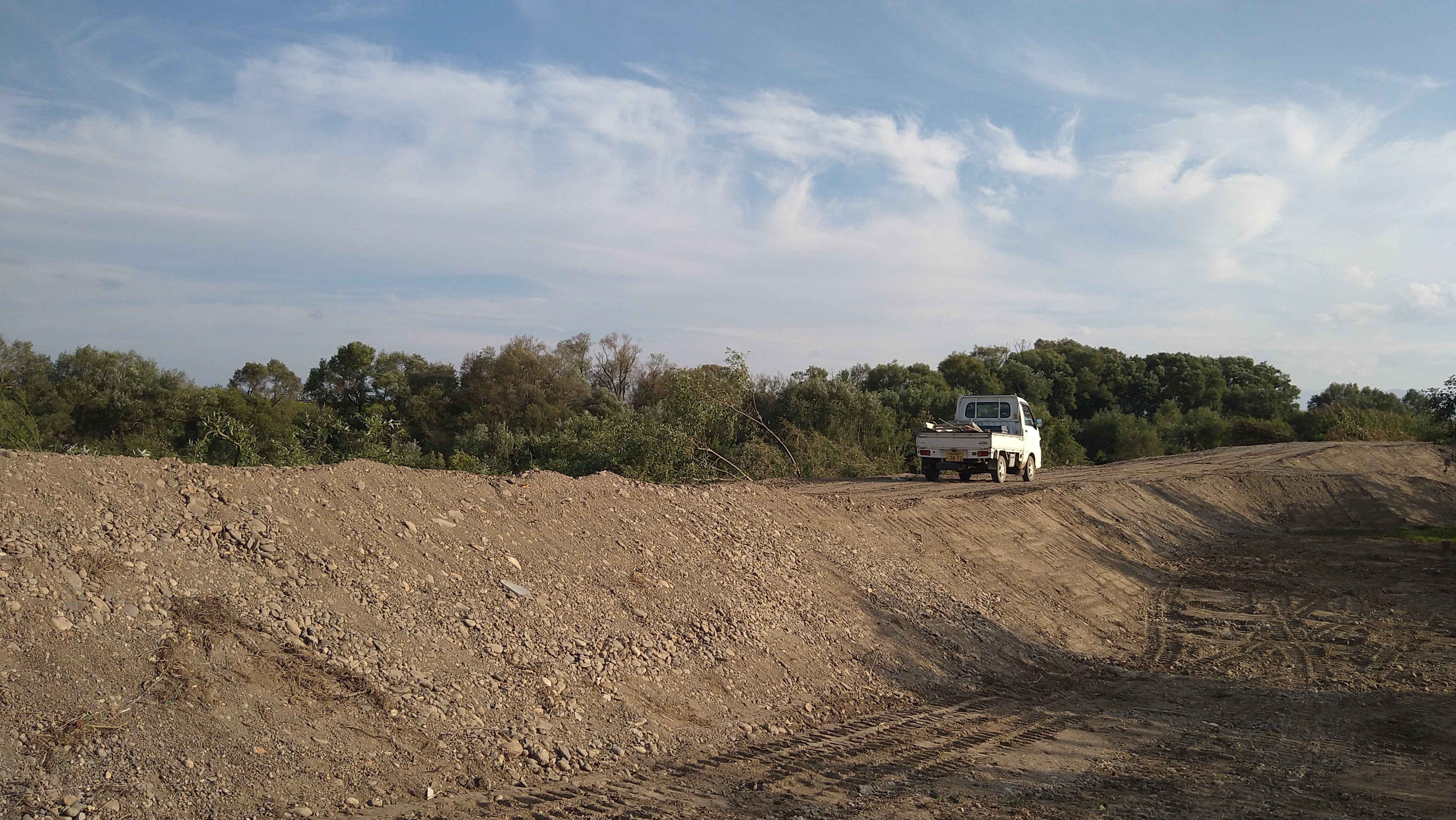 決壊した土手堤防。国交省管轄の工事、これで完成?1mぐらい低くなりました。台風の雨が心配です。