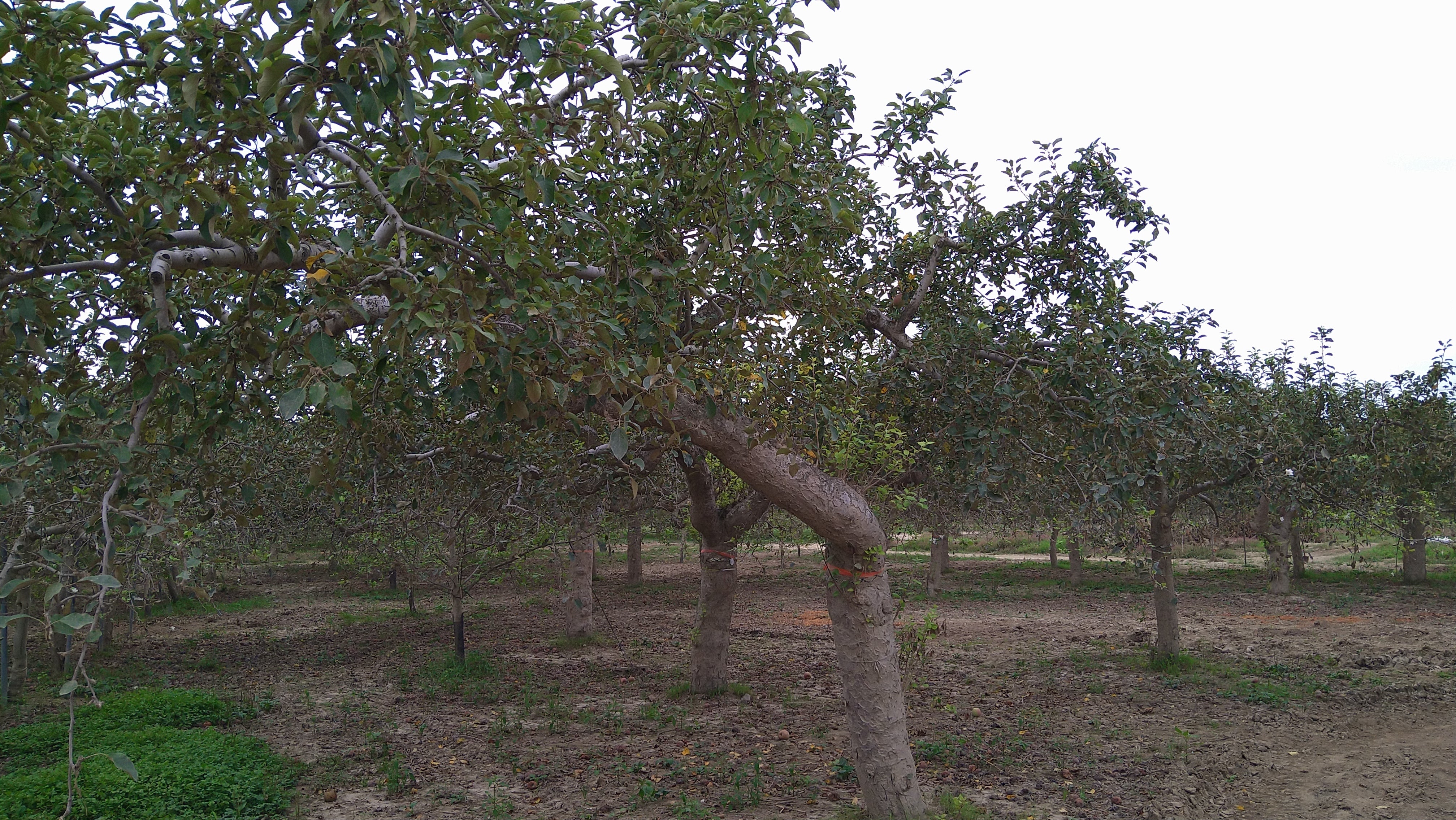 ゴミや泥を落とす作業開始。灰色だったりんごの葉が緑に戻りつつあります。まだ木には泥が付着してるので洗浄する予定です。