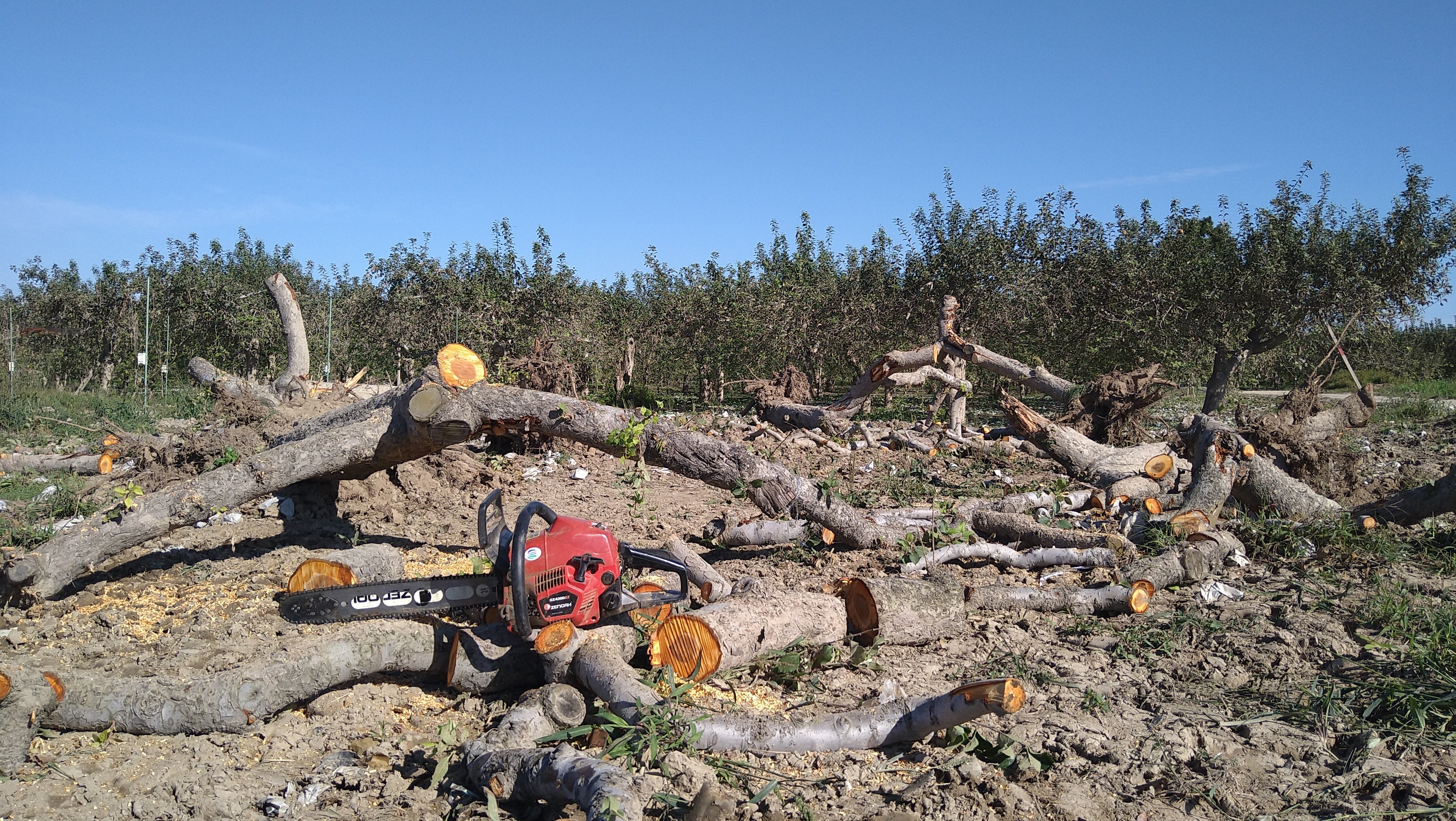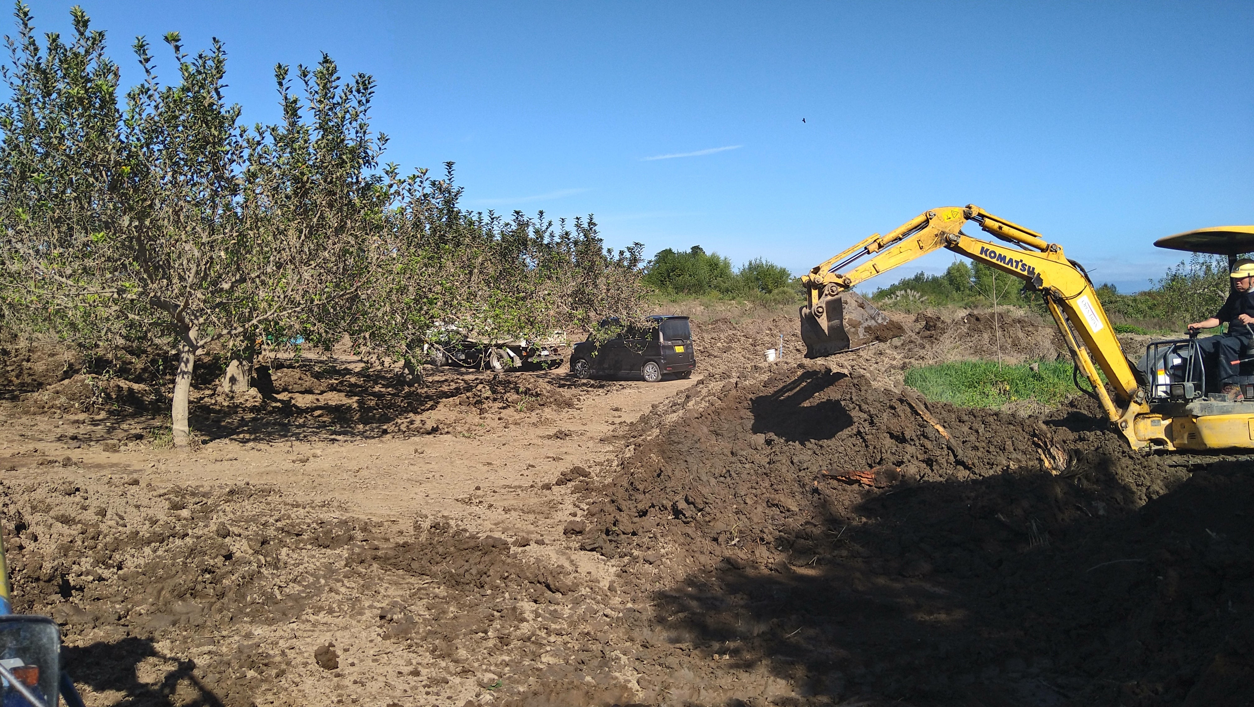 今年植えた苗木を生かす為に枯れた部分をカット。これで生きてくれるのを願うばかりです。今日は友達が手伝いに来てくれたので倒れた木の抜根と後片付けの作業。