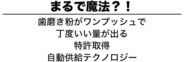 ワンプッシュするだけで、本体内に詰めた歯磨き粉が、ブラシの中央に、魔法のようにピッタリな量の歯磨き粉を出してくれます。