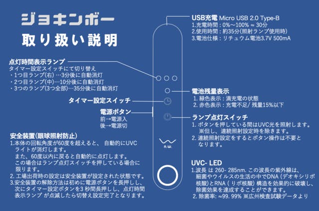 今回開発した「ジョキンボー」は、近年変化してきた環境に十分に対応している除菌グッズがないという観点から開発を決めました。一番苦労したのは、出力性能と充電能力と重量と製品コストとのバランス。少しでも良いものを手ごろな値段でお届けする、という事です。