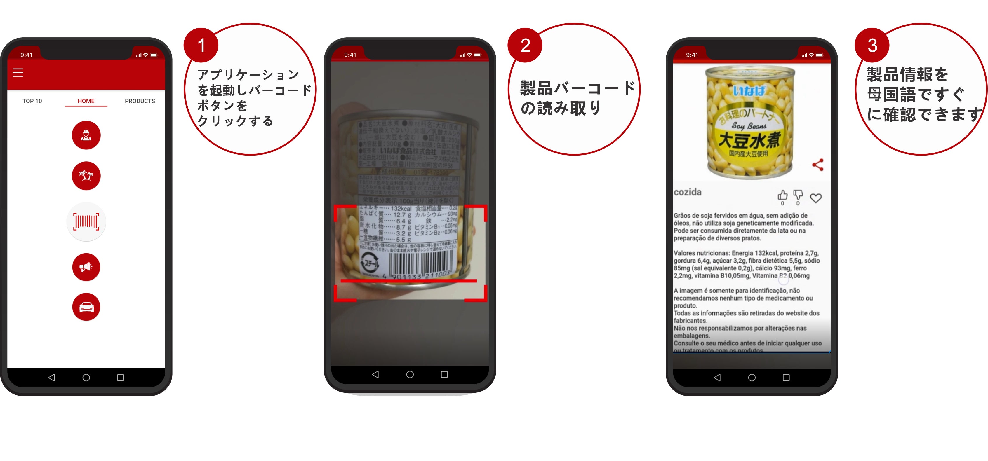 APP を使えば、わずか 2 クリックで、製品に関するすべての情報を知ることができ ます。製品情報を正しく理解することで、製品を購⼊しやすくなり、⽇本製品の振 興にもつながり、経済を⽀えることになります。