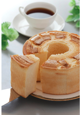 ハルツのイチオシのシフォンケーキは、当初小麦粉入りのシフォンケーキを作っていましたが約20年くらい前、小麦粉アレルギーのお客様から『何とか小麦粉なしで作れないか!』との声が多く寄せられた。それが米粉100%でつくることになったきっかけです。10年以上の月日をかけ試行錯誤の末、お米の粉でこんなに美味しく、ふわふわもっちりのシフォンケーキが出来上がりました。