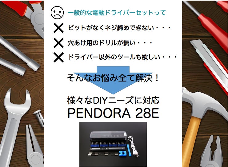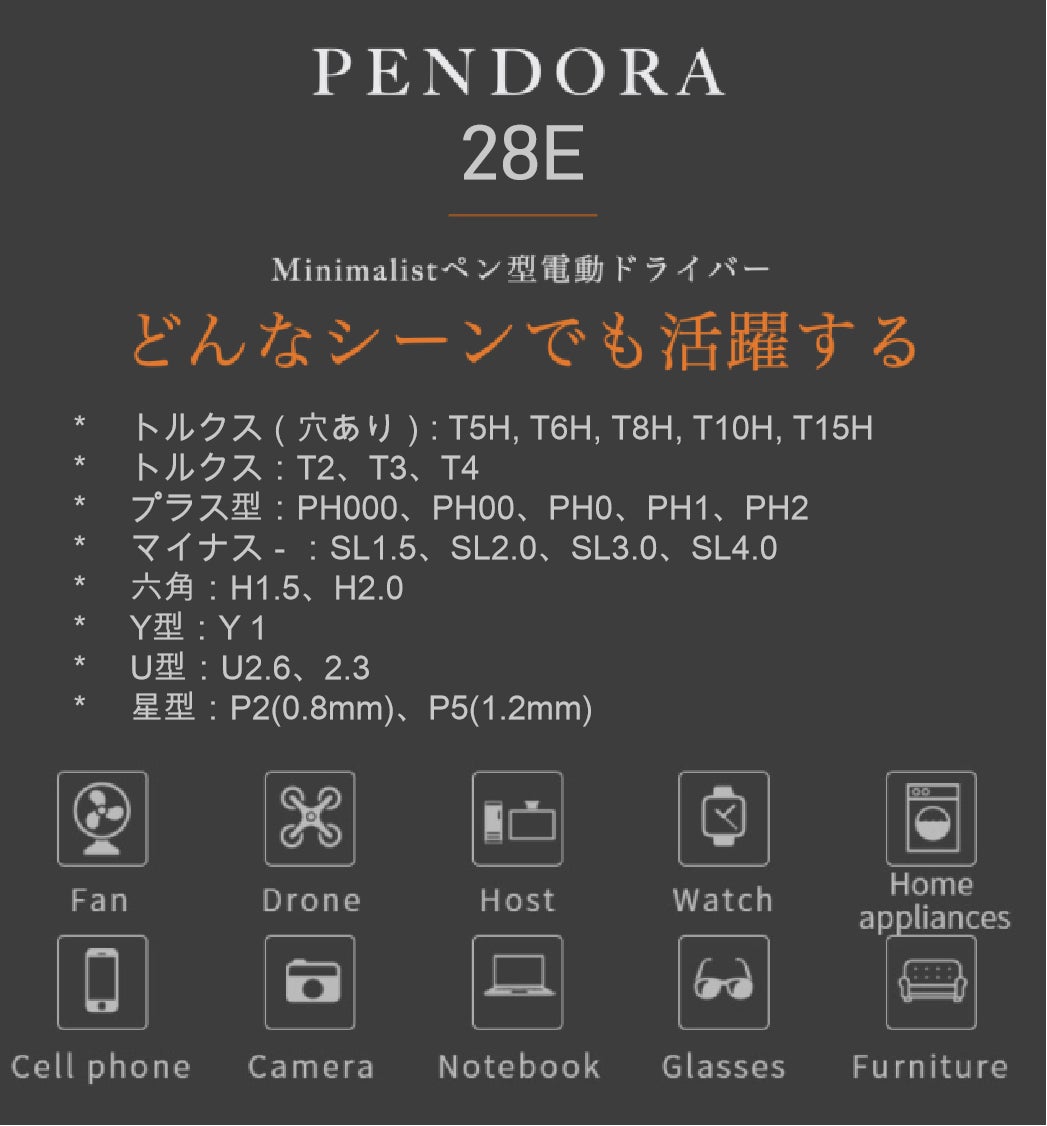「PENDORA」は株式会社BRIGHT DIYの自社ブランドで、"ペン型電動ドライバー"の省略系から命名されました。