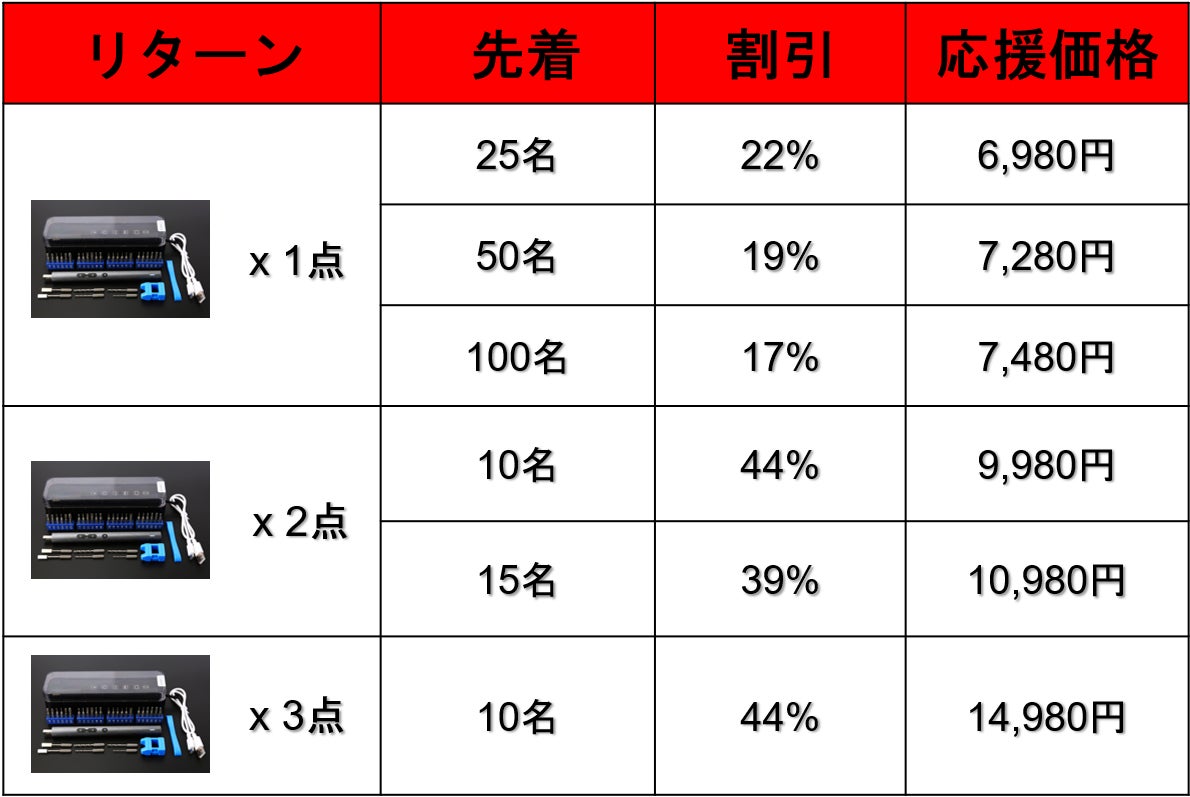 ●リターン価格:各リターン記載の通り *商品内容についてはリターン欄記載の通り