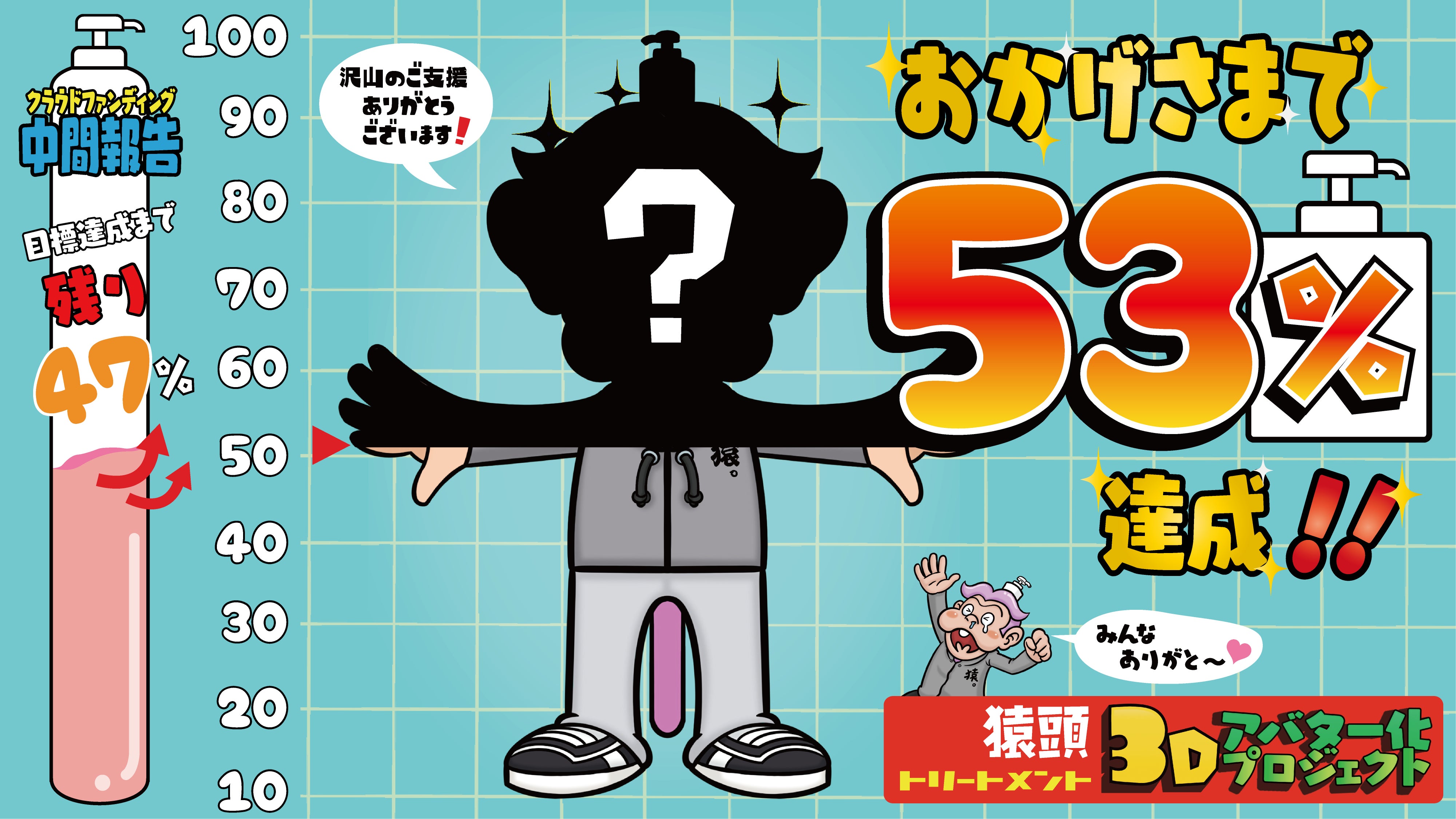 皆さんのお陰で開始早々50%を達成することができました!本当にありがとうございます!現在クラウドファンディングと同時進行でアバター制作を進めております。残り47%、引き続き応援・拡散よろしくお願いします!
