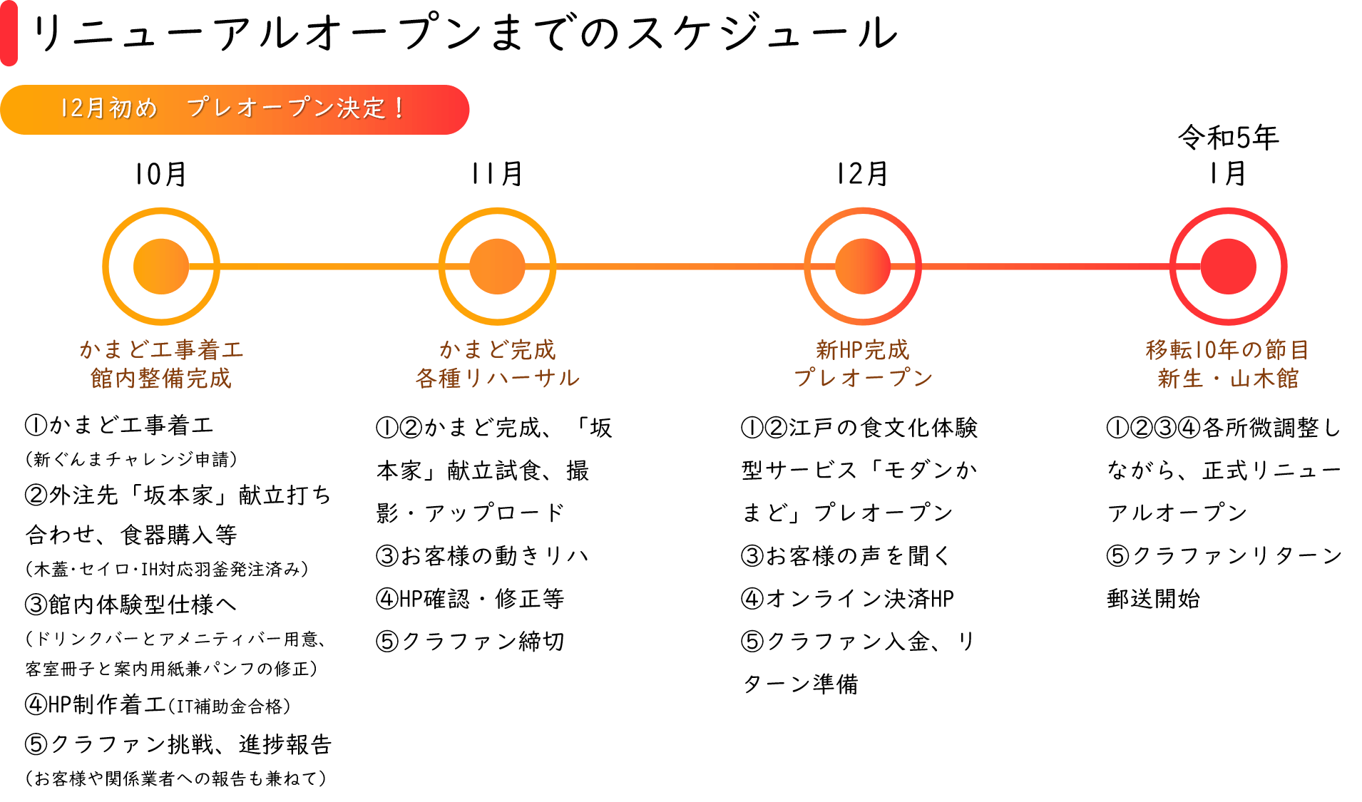 リニューアルの要である、「モダンかまど」の工期やHPリニューアルの納期が出ました!