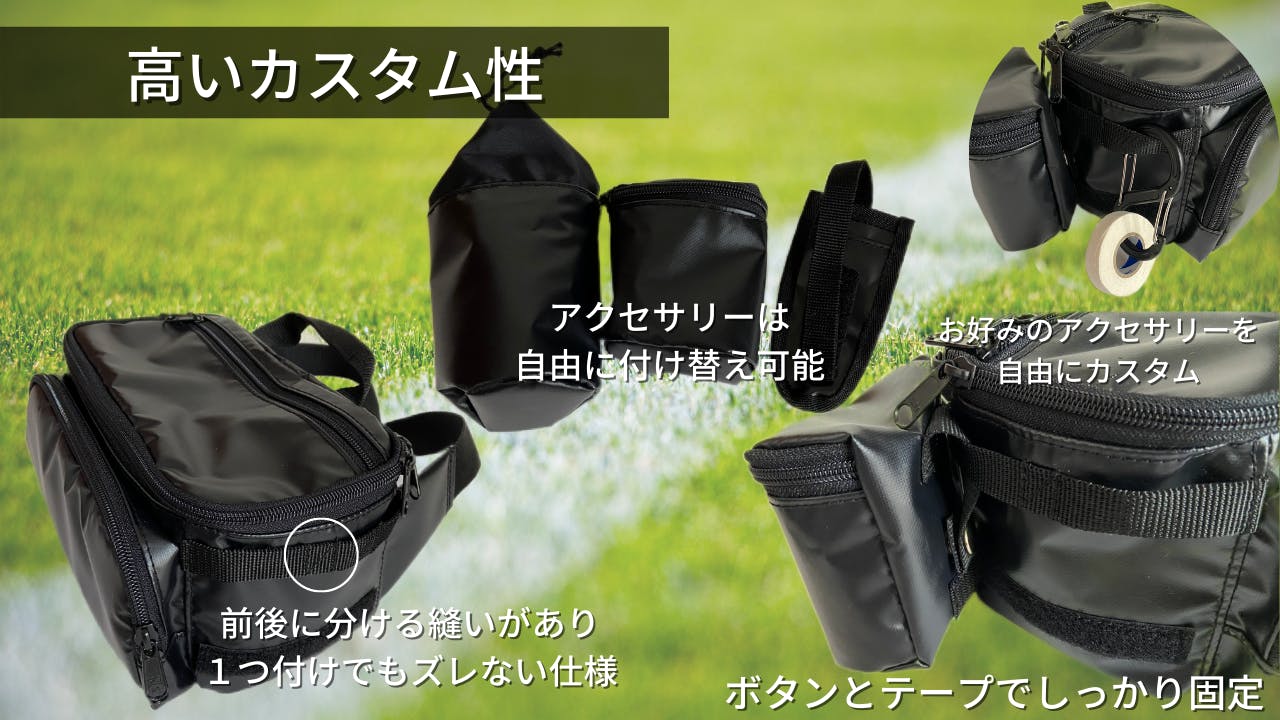 トレーナーバッグというスポーツ現場にて使用するウエストバッグを、長年アスレティックトレーナーとして現場に立ち続けた3名が試行錯誤し、商品を作成しました!!