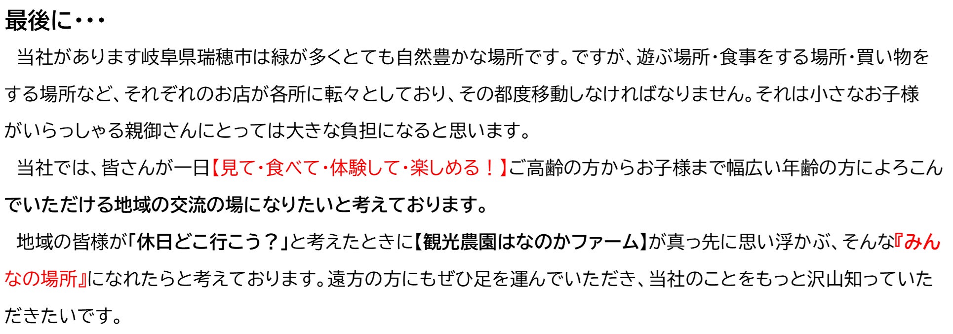『観光農園はなのかファーム』で様々な農業体験コーナーを設けたら、もっとたくさんのお客様に喜んでいただけるか、もっと人と人とのつながりや心の豊かさ・地域の活性化に貢献できるかと思っております。