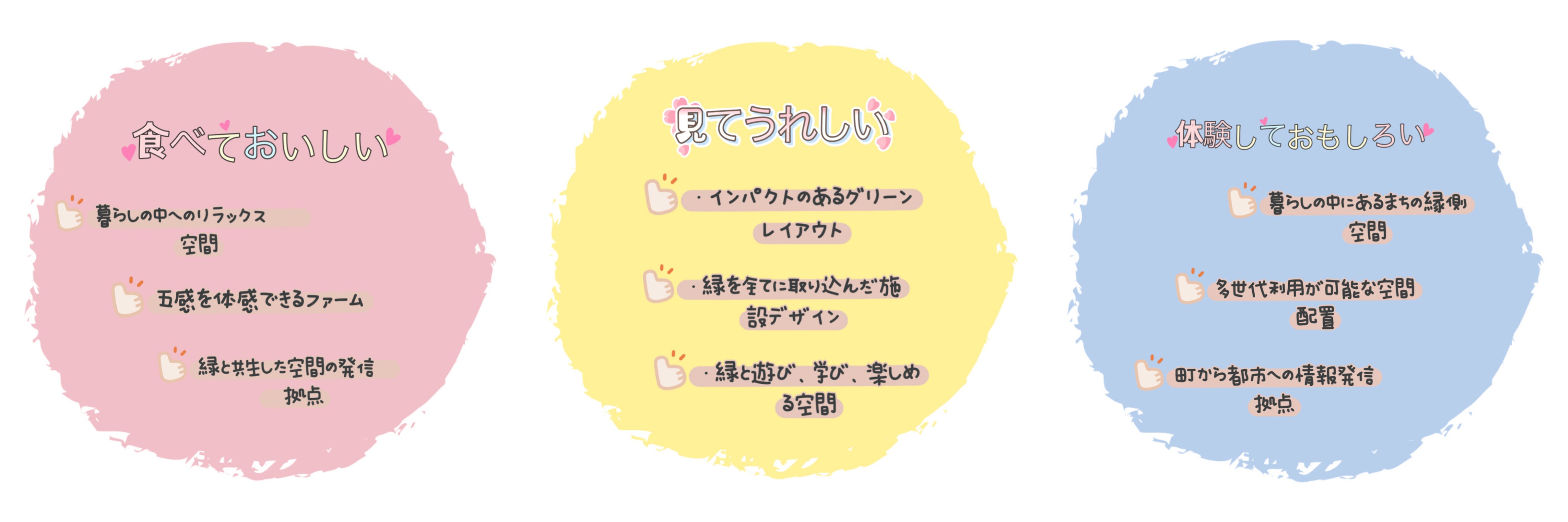 お客様によりご満足いただけますよう、より農業を身近に感じてもらえますよう、 『はなのかファーム』は3つの思いで名付けられました。