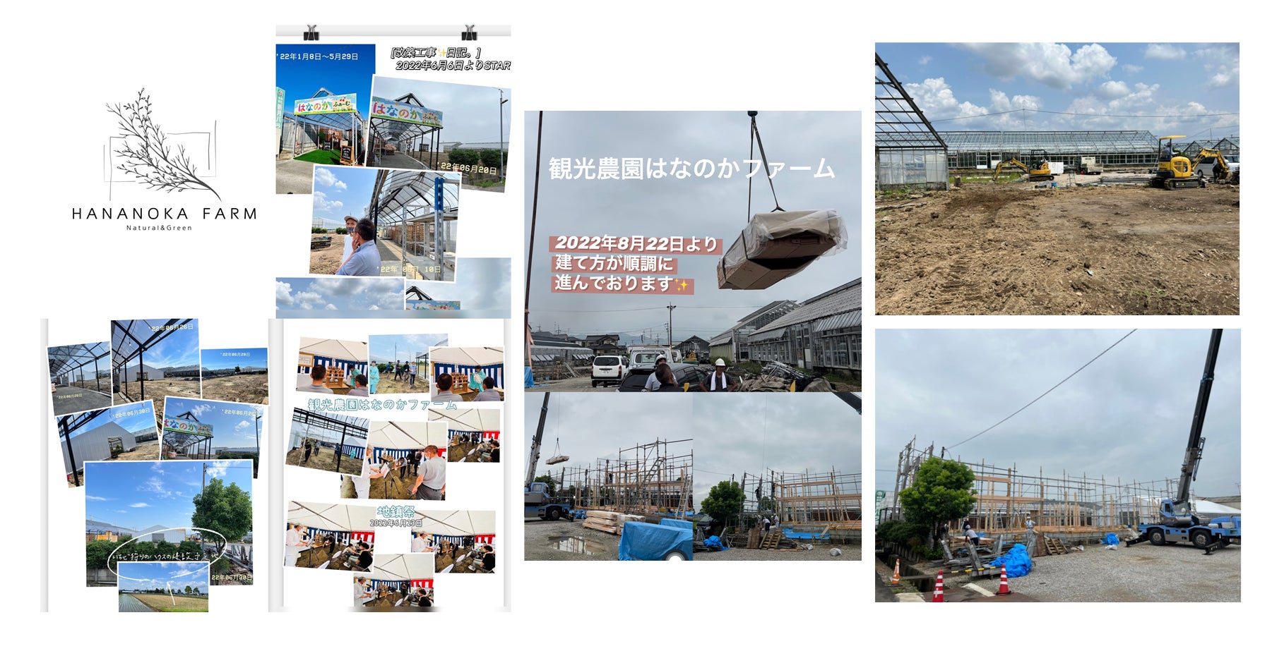 2022年6月より既存事業で使用している1棟の栽培用温室を解体し『観光農園 はなのか』を改築し、南側の空き地を利用したイチゴ栽培ハウスを4棟増築することになりました。
