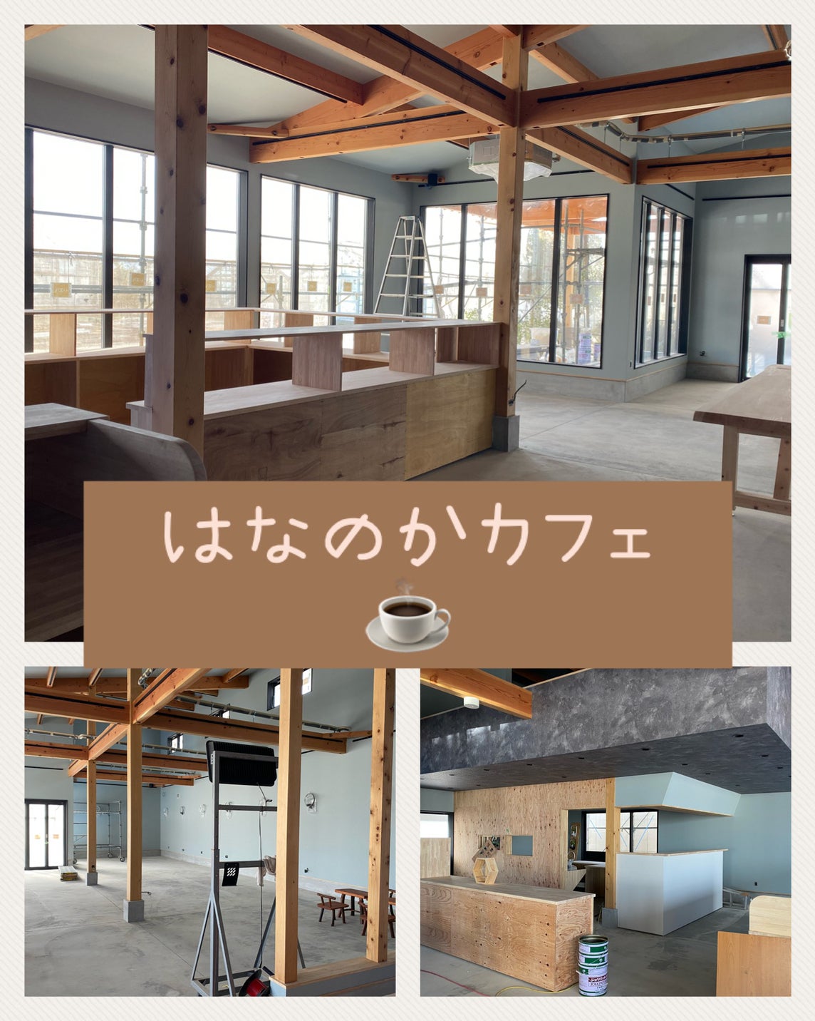 2022/11/16 16:12はなのかカフェ観光農園OPENに向けて急ピッチで作業を進めております!!はなのかカフェの内装工事がひと段落し、なんとなくですがカフェの雰囲気が出てきました♪窓も大きく天井も高いので、お日様の光が沢山入る解放感溢れる店内になりそうです。まだまだ完成には時間がかかりそうですが、もう少しでこちらの空間にお客様をお迎え出来ることが出来ると思うと本当に楽しみです♪そして、日頃より沢山のご支援や応援をいただきありがとうございます。当園のクラウドファンディングのプロジェクトにご参加いただきました皆様、リターン品のお渡しは12月下旬頃を予定しております。郵送でのお渡しを予定しておりますが、当園をご利用なさる際に受け取っていただくことも可能です。また、リターン品のチケットでのいちご狩りのご利用は、お手数ですがお電話でのご予約をお願いいたします。その際にチケットでのご利用の旨をお伝えください。ご不明点があれば、お気軽にご連絡いただきたいです。今後もはなのかファームの進捗状況をお伝え出来ればと思います。お楽しみに♪ もっと見る