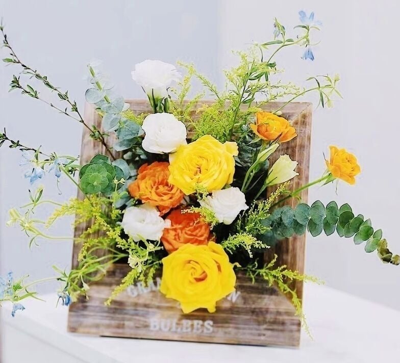 下記の写真は去年の年末開催した葉牡丹の寄せ植え教室です。とても豪華で新年を迎える飾りにふさわしく、イーゼル付きなので玄関先に飾っていただけます。誰もが目を引くこと間違いなし✨他にもアロマキャンドルやハーバリウム体験なども実施しました。花材を1から選びどの位置に置くかで同じ材料でも全く違った作品ができます。一度だけでなく何度でもお楽しみいただける内容になっております♩