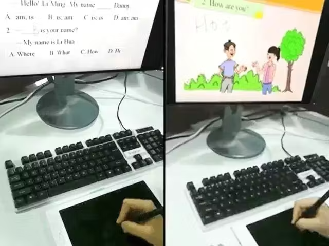 専用ペンでマウス操作しながら描いています!