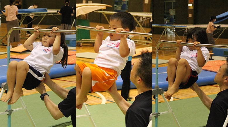まずは体操からスタートすることによって、ケガをしない柔軟性を身につけることができます。鉄棒は、小さい頃にある程度の腕力がつき、逆上がりの成功体験が運動を好きになることにつながり、次のチャレンジへ導きます。