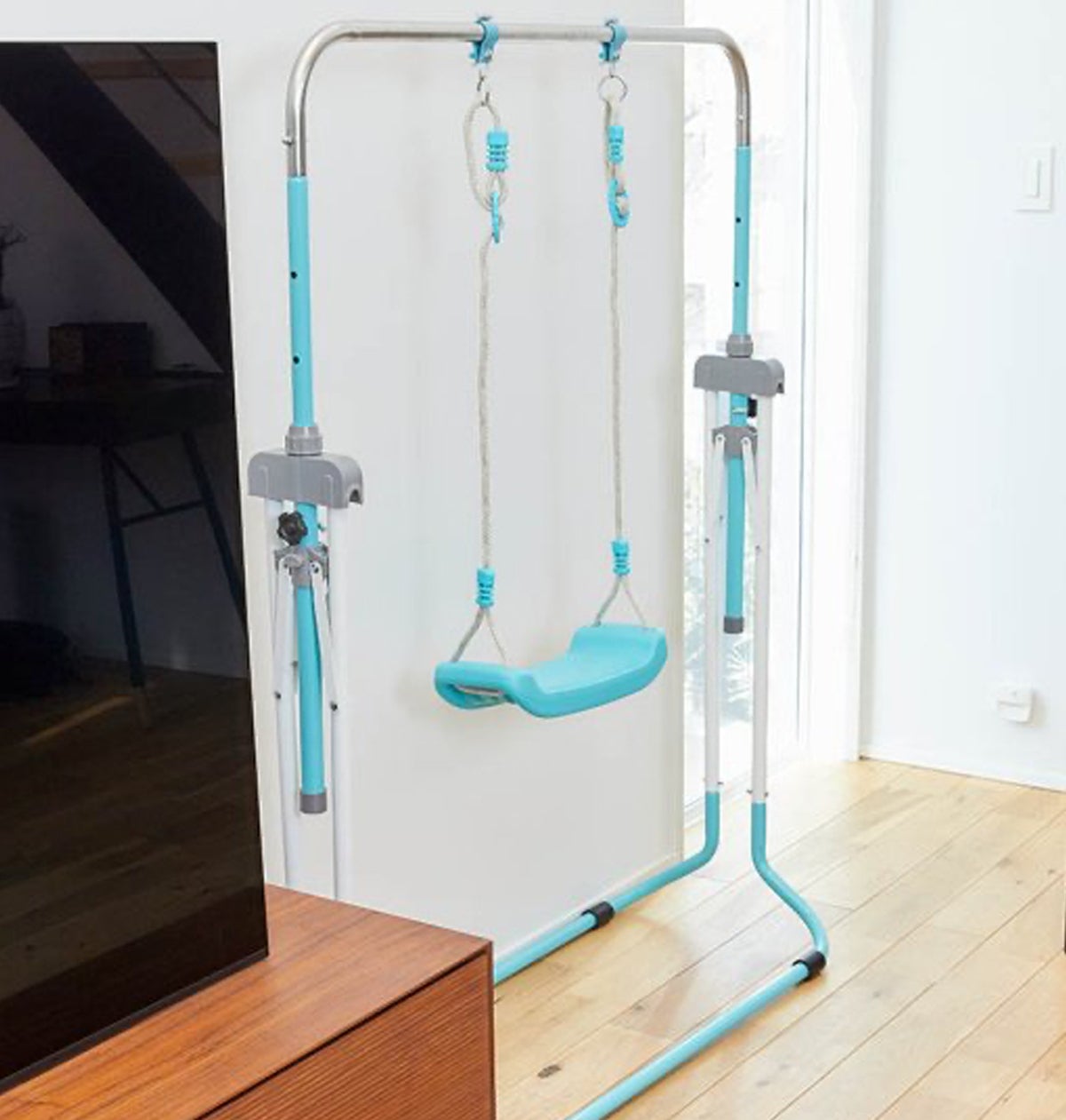 そして、部屋の中でも何かできることはないかと、既存の鉄棒ブランコ商品の上位機種としてより安全で高品質な商品をリリースしたいと企画販売。