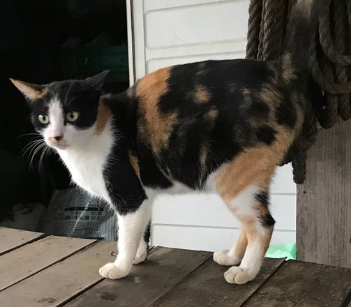 写真は、けっこう現場で目立ってる三毛のミーちゃんです。いつもマイペースで一人だけ別の所にいるので目につく美猫さんです。(ここにはきれいな模様の三毛猫さんが多いです)