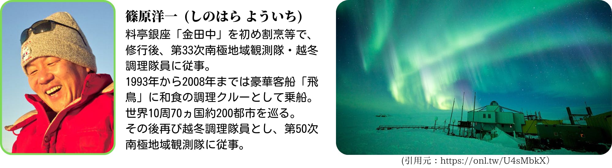 小学校のイベントで、南極観測隊の料理人として二度南極へ渡った篠原洋一さんが講演に来て下さり、南極の話を沢山してくださりました。