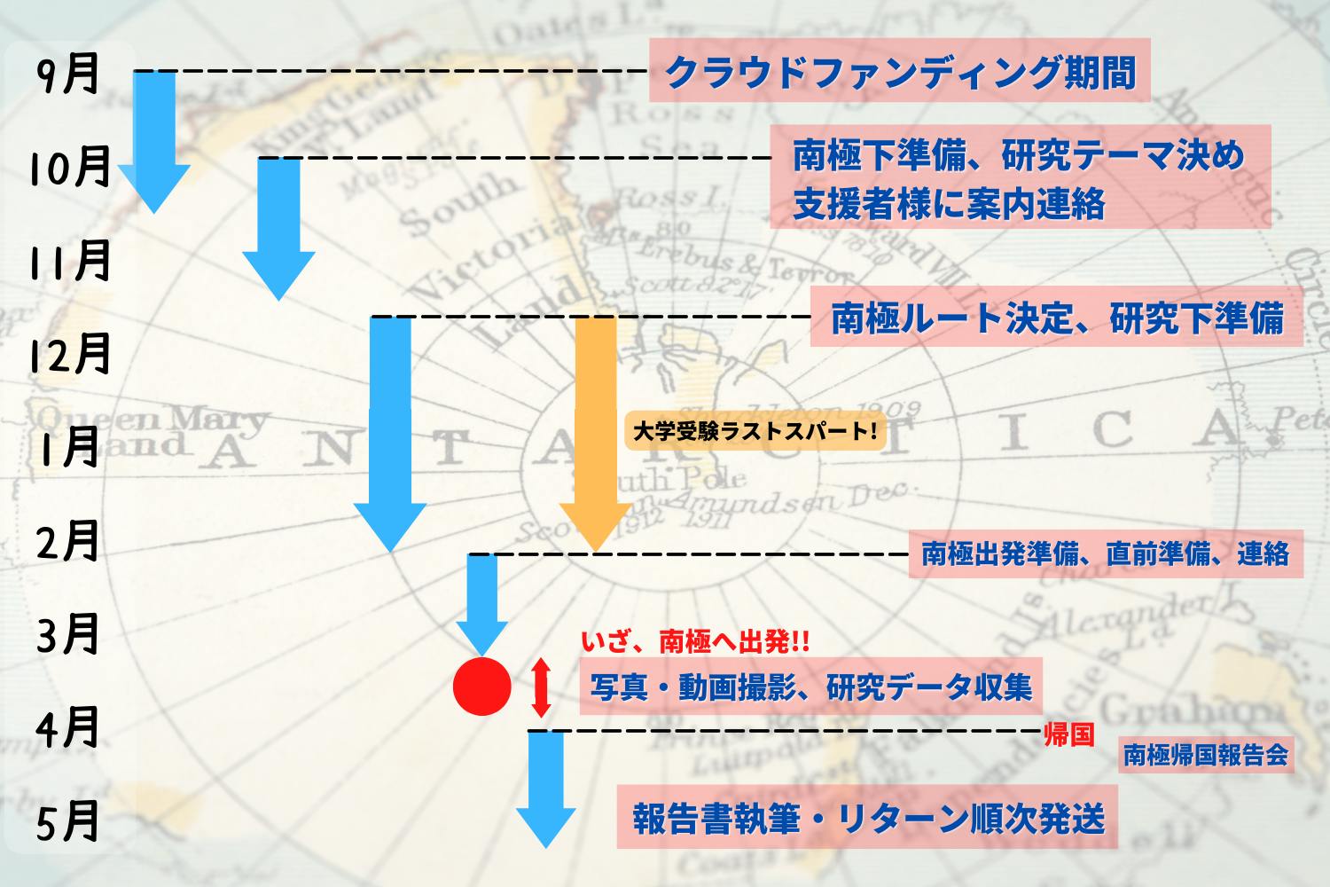 このプロジェクトは、どこにでもいる普通の高校生が、南極に行くまでの物語を皆さんと一緒に描き、